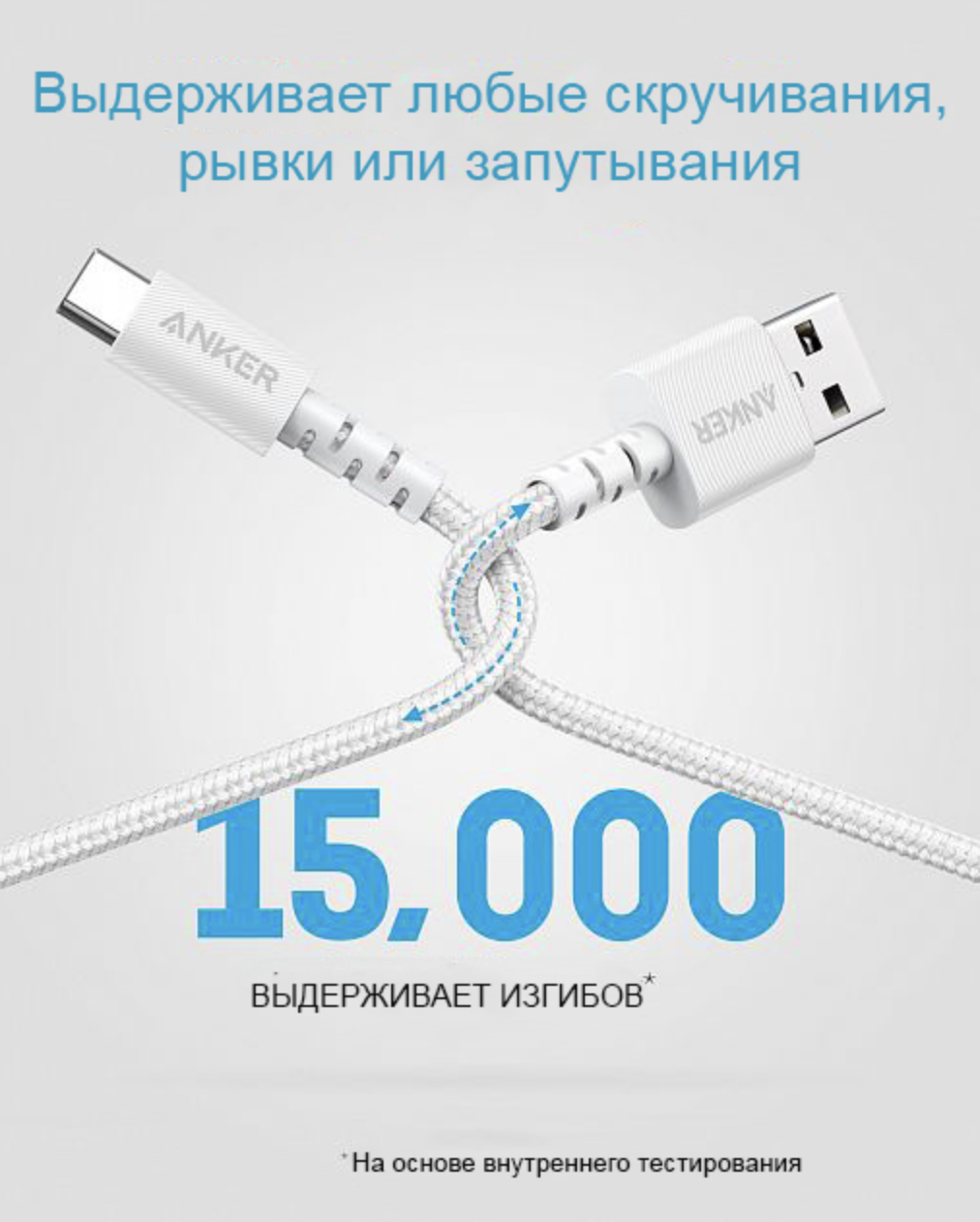 После Anker Powerline вам, возможно, больше никогда не понадобится какой-либо другой кабель. Он выдерживает количество изгибов более 30000 раз и работает в 30 раз дольше, чем другие кабели. Это просто один из самых прочных кабелей за всю историю. Один из самых прочных кабелей, когда-либо созданных, с прочностью на растяжение, выдерживающей нагрузку до 80 кг.