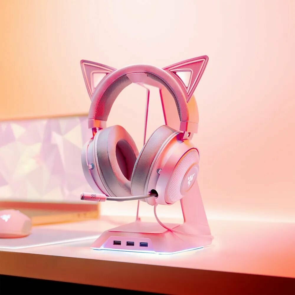 | Дополнительная информация | Кошачьи ушки и чашки наушников с подсветкой Razer Chroma RGB Виртуальный объемный звук 7.1 Разъем подключения - USB |