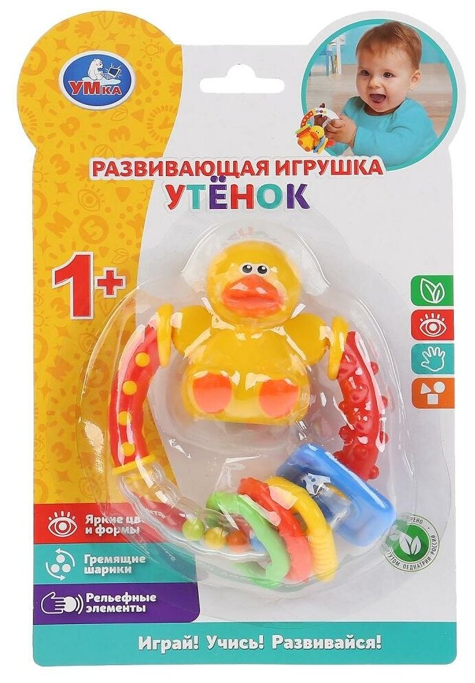Развивающая погремушка Утёнок ТМ УМка разработана специально для малышей.