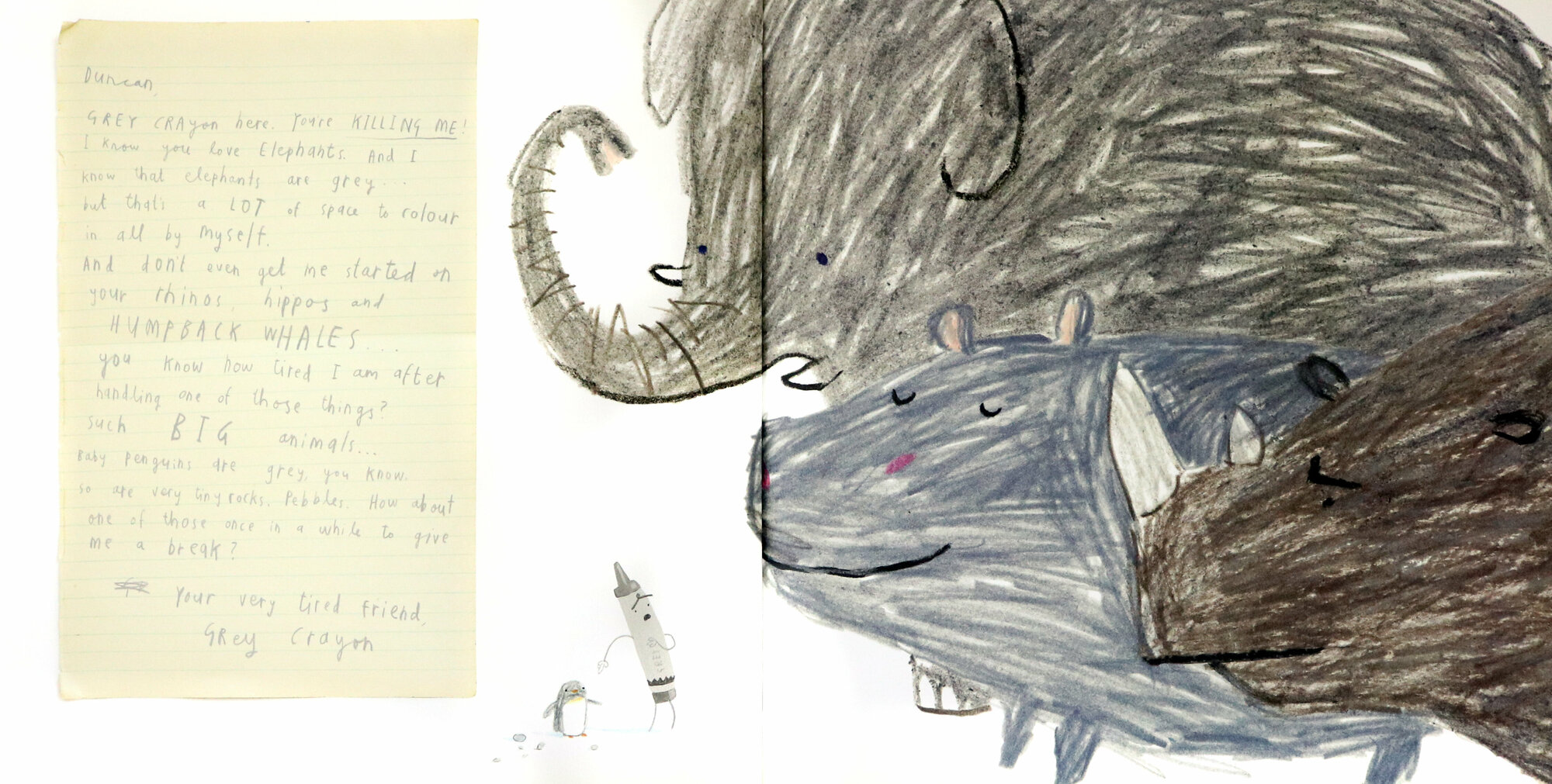 Poor Duncan just wants to colour in. But when he opens his box of crayons, he only finds letters, all saying the same thing: We quit!
