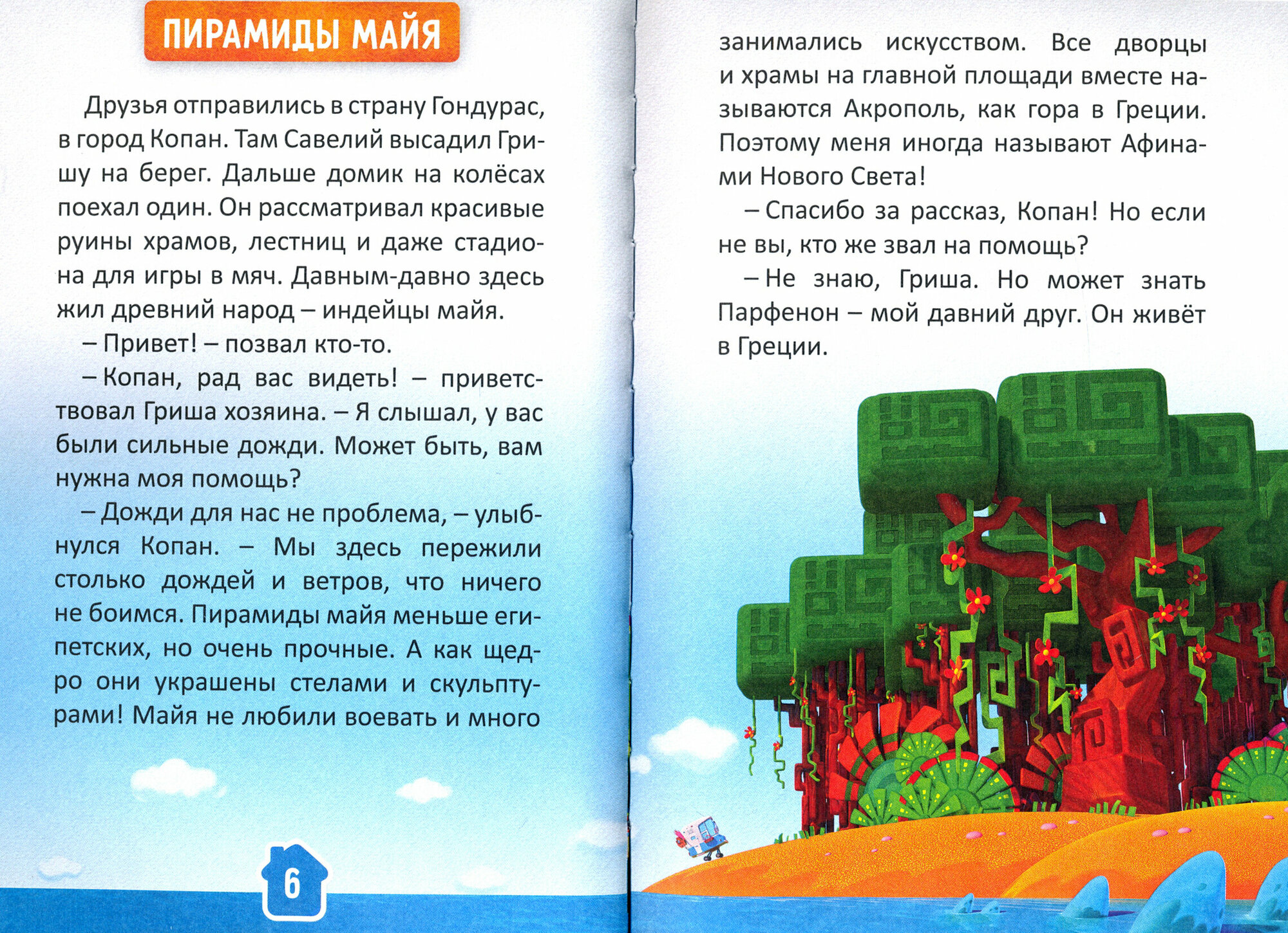 Еще одна книга из серии про домик на колесах Гришу. Книга для тех, кто ищет хорошую художественную литературу про транспорт и т.д. Справочников и энциклопедий на эту тему пруд пруди, а вот именно художественной литературы со связным сюжетом крайне мало, особенно на возраст старше 3, но младше 7. Всё либо очень простенько и скучно, либо уже сложно и длинно. Здесь же сквозной сюжет, разбитый на отдельные законченные по смыслу главы, что позволяет не искать судорожно, где поставить паузу, когда ребенок хочет сменить вид деятельности. В дополнение к сюжету есть и познавательный компонент: коротенько, но по существу рассказывает о разных знаменитых домиках мира. Некоторые, конечно, и не домики вовсе, а целые замки и дворцы. Впрочем стоить отметить, что старшим дошкольникам тоже интересно.