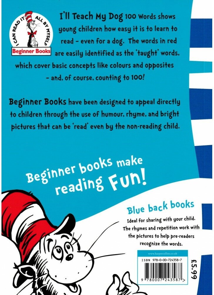 Introduced by the Cat in the Hat and featuring a selection of Dr. Seuss artwork and rhyming sentences, I’ll Teach My Dog 100 Words shows young children how easy it is to learn to read – even for a dog.