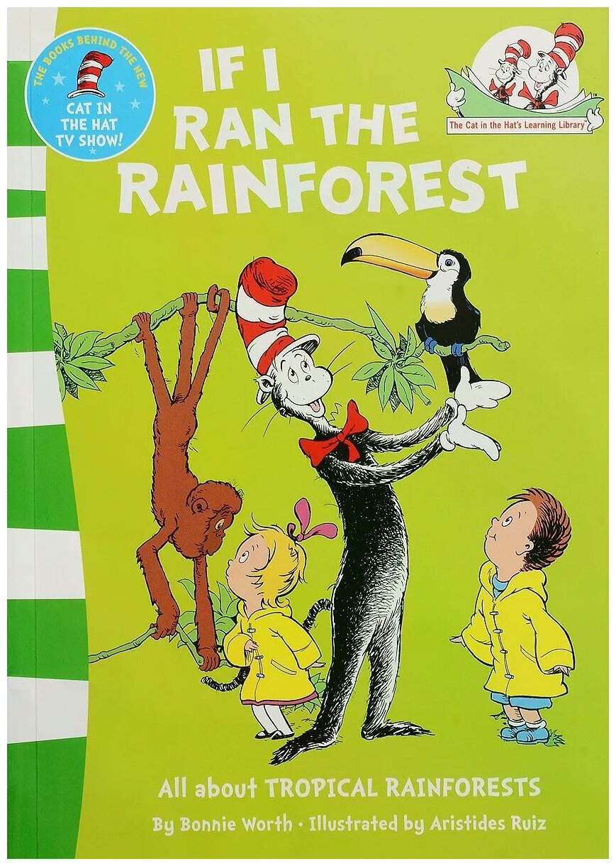Небольшого объема, но очень информативная любимая серия "энциклопедий" с бело-зеленой отбивкой по корешку от Кота в шляпе Доктора Сьюза. Автор текста Bonnie Worth, иллюстрации Aristides Ruiz.. Хорошо рифмованный текст в стиле Сьюза про тропический лес.. Единый формат , такой же как у серии с красно-белой боковой отбивкой. Шито-клееный переплет, удобно полностью раскрывать. Обложка-тонкий картон с ламинацией.