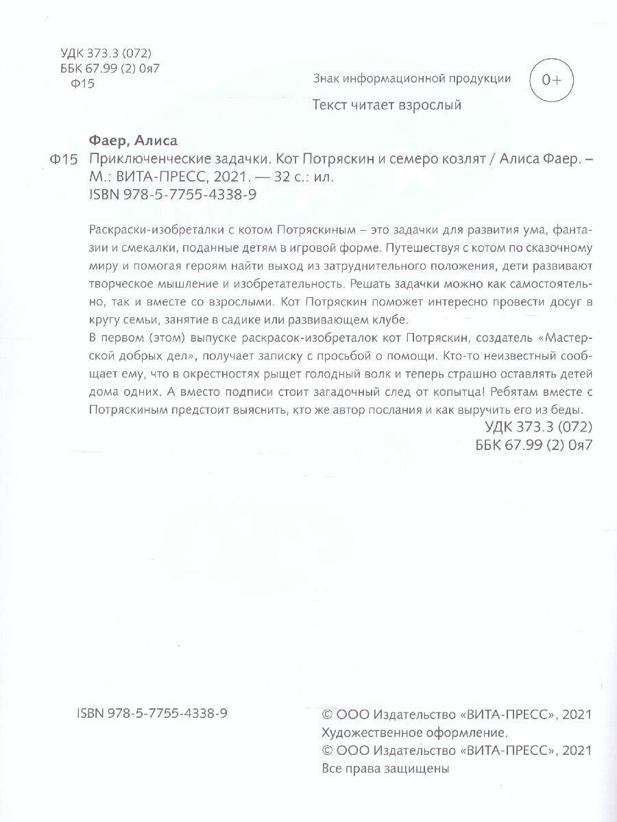 Приключенческие задачки. Кот Потряскин и семеро козлят (Фаер Алиса Сергеевна); Вита-Пресс, 2020