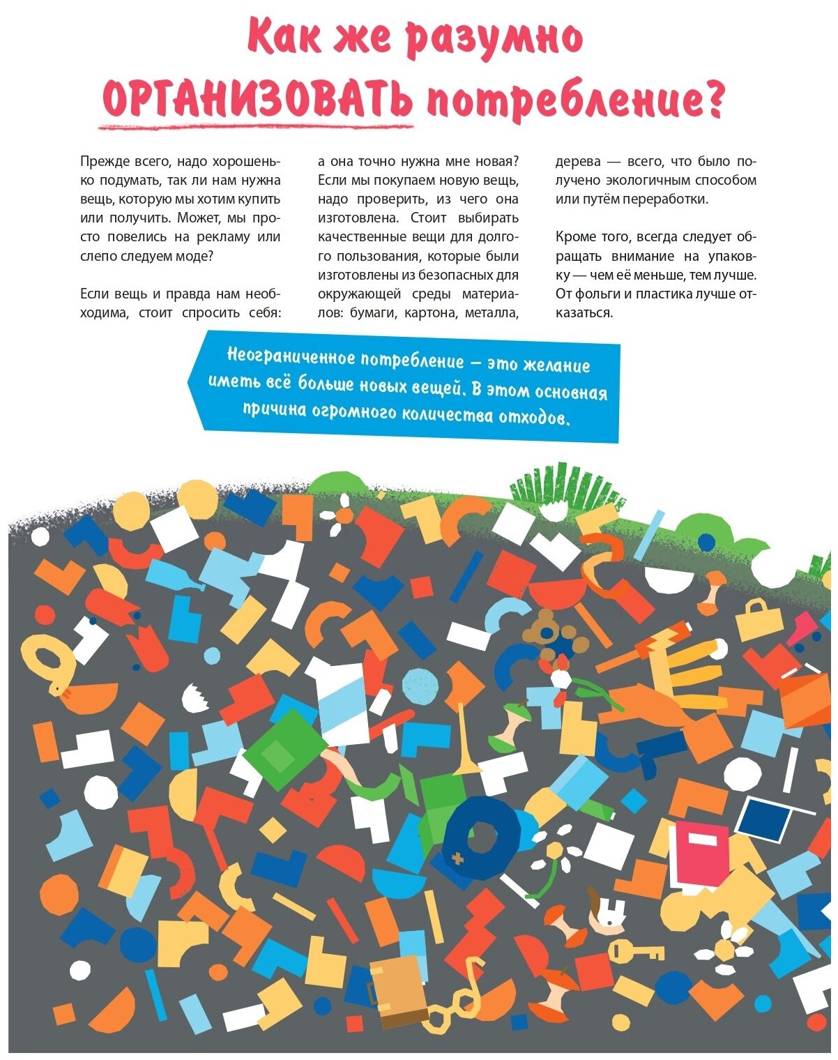 Если читать книгу от начала и до конца, можно узнать несколько способов уменьшения количества мусора. Почему несколько, а не все? Потому что всех способов не знает никто и постоянно появляются всё новые и новые идеи. Может, ты тоже что-нибудь придумаешь?