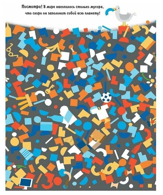 Если листать страницы с конца, следуя за синей стрелкой, можно увидеть, как быстро мы заваливаем планету мусором. Надо с этим что-то делать...