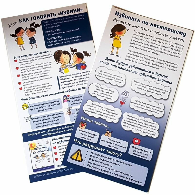 Книга "Ни за что не извинюсь!" в доступной форме знакомит детей и взрослых с тем, как важно понимать и уважать чувства другого человека. Проиллюстрированная очаровательными рисунками Тани Русситы, она несёт в себе глубокий посыл о значимости контакта с нашими подлинными эмоциями. Подчёркивается, что позитивные сожаления - это те, которые идут от сердца, а мы, взрослые, можем оберегать и развивать в ребёнке способность к заботе и сопереживанию.