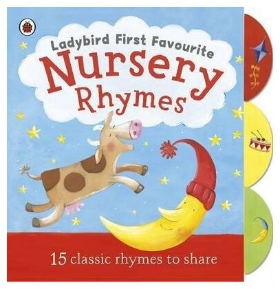 "Ladybird First Favourite Nursery Rhymes" contains 15 well-loved, classic nursery rhymes to share and enjoy together. A beautifully illustrated first nursery rhyme book with tabs, it is perfect for young children. This lovely book has a squishy padded cover and sturdy tabbed edges to help find and choose playtime, sing-along or bedtime favourites! The playtime rhymes section contains popular classics such as "Jack and Jill", "Little Miss Muffet" and "Little Boy Blue". Or sing and clap along to the interactive rhymes such as "Ring-a-ring o'roses", "The Wheels on the Bus", "Pat-a-cake", and "Incy Wincy Spider". Then soothe your little one to sleep at the end of the day with favourite bedtime rhymes like "Twinkle, Twinkle, Little Star" and "Hush-a-bye, Baby".