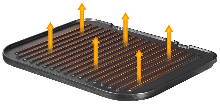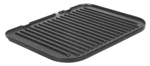 Сменная панель надежна и долговечна: она выполнена из алюминия, на рифленую часть нанесен прочный антипригарный слой. Благодаря антипригарному покрытию мясо и другие продукты во время жарки не прилипают к поверхности панели.