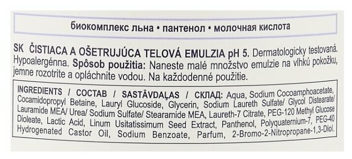 Лосьон для тела моющий (для мытья всего тела) Seni Care Лосьон для нежного мытья лица и тела, поддерживает жировой баланс сухой кожи. Без содержания спирта. Благоприятный для кожи нейтральный уровень pH5 стабилизирует защитный кислотный покров кожи. Рецептура обогащена биокомплексом льна, который оказывает на раздраженную кожу смягчающее и успокаивающее действие. Идеален для мытья и ухода за кожей лежачих больных. Биологически-активные компоненты: глицерин, биокомплекс льна, молочная кислота. Упаковка: 500 мл. Арт. 605 Использование: Нанесите небольшое количество лосьона на влажную кожу, оккуратно распределите, а затем смойте водой.