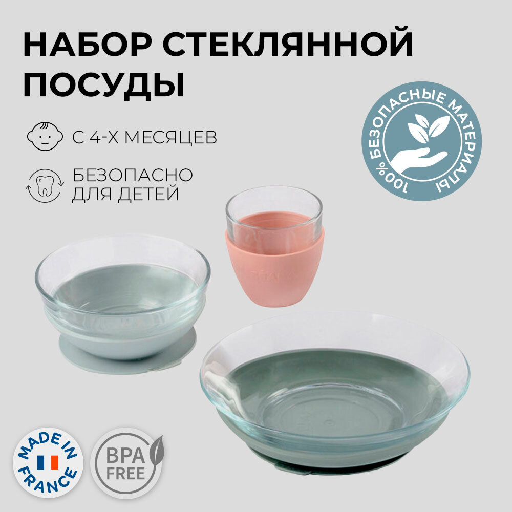 Набор стеклянной посуды Beaba 3 предмета голубой (913486) BÉABA