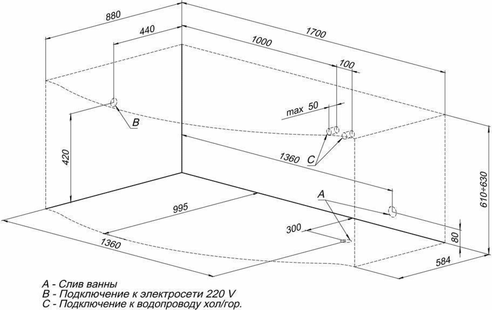 | Устройство перелива | приобретается отдельно |