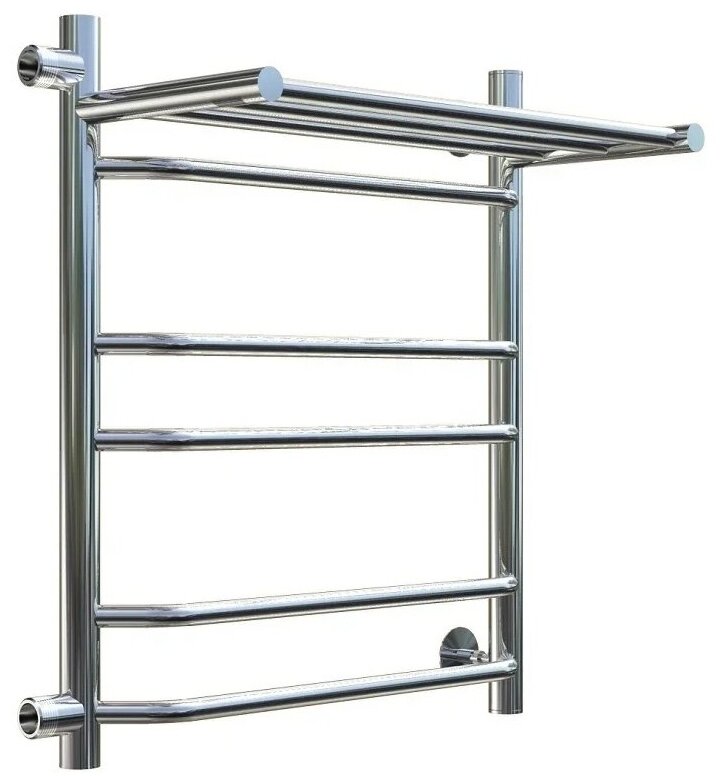 Полотенцесушитель типа "лесенка" с боковым подключением трапецевидными вставками с полкой . Серия 3 предполагает размещение вставок тремя группами сверху, снизу и по центру. Полотенцесушитель имеет наружнюю резьбу на боковых выводах. В комплекте имеются заглушка с краном маевского и телескопические держатели.