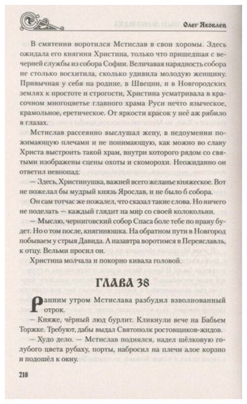 Нравится эта серия книг, в том числе и как пишет сам автор. Мстислав томится в Новгороде с непокорными боярами. Чего только не было... И бунты, и рати. Вот где прошло его детство, где он вырос... Занял он все таки вожделенный киевский стол на 7 лет. Старался Мстислав следовать отцовым заветам, но не всегда выходило так. Так же представлены описания угорского короля Коломана и истории второстепенных персонажей.