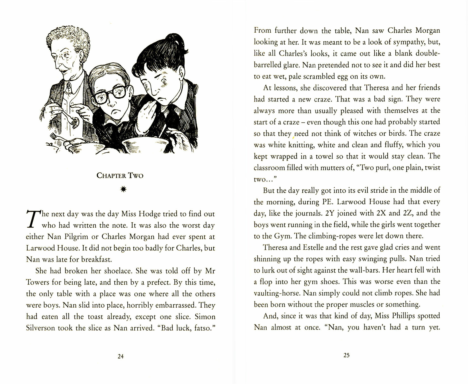 Начало повествования показалось достаточно медленным, но потом с каждой страницей становилось все лучше и лучше – разгоняясь с помощью магии и выходок главных героев. Действие происходит в очень маленькой британской школе-интернате. Дети здесь грубы и жестоки, просто пытаются пережить день за днем. И среди них скрывается настоящая ведьма! С момента, как мистер Крестли находит анонимное сообщение об этом, события начинают набирать обороты, а на горизонте уже маячит инквизиция.
