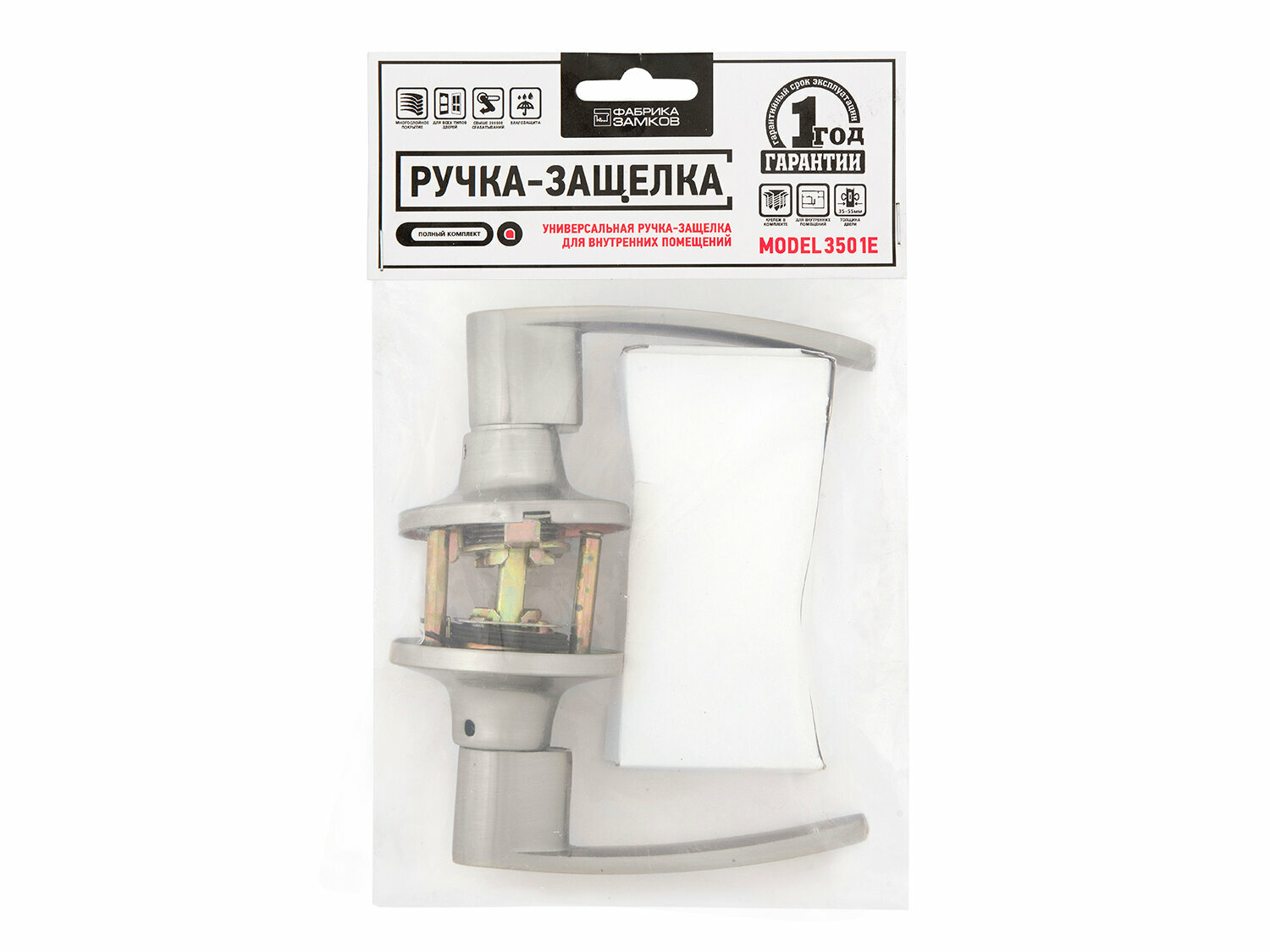 Дверная ручка-защелка ФАБРИКА ЗАМКОВ 3501E без фиксатора матовый никель