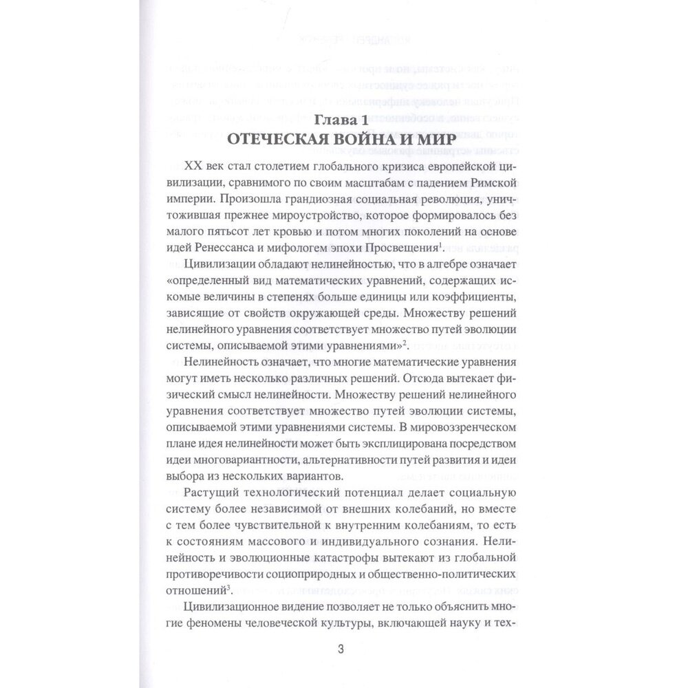 Цивилизации обладают нелинейностью, что в алгебре означает «определенный вид математических уравнений, содержащих искомые величины в степенях больше единицы или коэффициенты, зависящие от свойств окружающей среды. Множеству решений нелинейного уравнения соответствует множество путей эволюции системы, описываемой этими уравнениями»