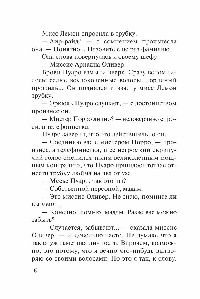 Продолжается мое увлекательное знакомство с творчеством Агаты Кристи. На сей раз знаменитого детектива Эркюля Пуаро втянула в необычную историю его подруга - писательница детективов. По заказу богатого сквайра в его поместье она организовывает детективную игру "Найди жертву" и вроде бы все готово, но ее внутренняя интуиция подсказывает, что здесь что-то не чисто Не по своей воле оказавшись в центре происходящего, нашему сыщику предстоит распутать невероятно запутанный клубок событий и личностей. Начало истории втягивает моментально. Большое количество имён действующих лиц по началу смущает, но позже, когда вырисовывается психологический портрет каждого из них, становится проще. Правда, к концу истории, все окажутся не теми, кем вы их себе представляетеа это просто обожаю Кристи Я даже не пыталась предположить, кто убийца, (и не только потому, что я в этом, мягко говоря, не сильна )а как личнотьы вообще не имела отношения ни к одному из персонажей истрии, она " вообще "левая", казалось, убили ее только для отвода глаз. НО! Как это часто бывает у тётушки Агаты, случайностей в ее историях нет. Важна каждая упомянутая деталь, даже самая на первый взгляд незначительная. Именно из таких мелких деталей сложился финал, который едва уместился в моей голове. У меня даже вслух вылетела фраза: "Ну ничего себе!" Буду продолжать удивляться безграничным возможностям воображения и фантазии Агаты Кристи и вам советую познакомиться с автором, если вы еще обходите ее стороной