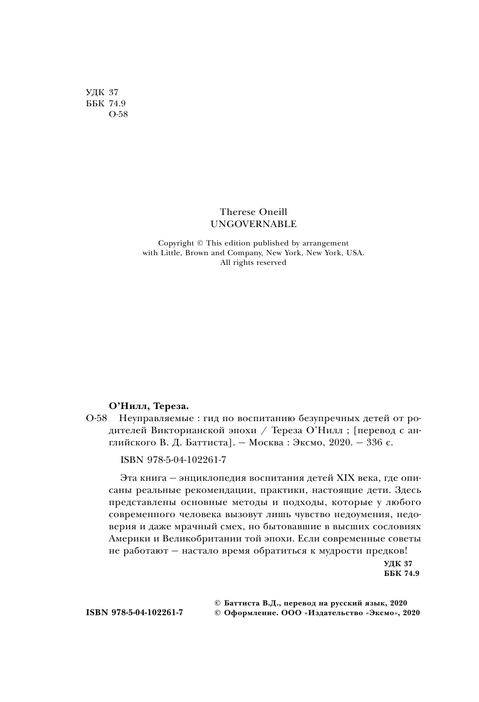 Неуправляемые. Гид по воспитанию безупречных детей от родителей викторианской эпохи (Тереза О' Нилл); ООО "Издательство "Эксмо", 2020