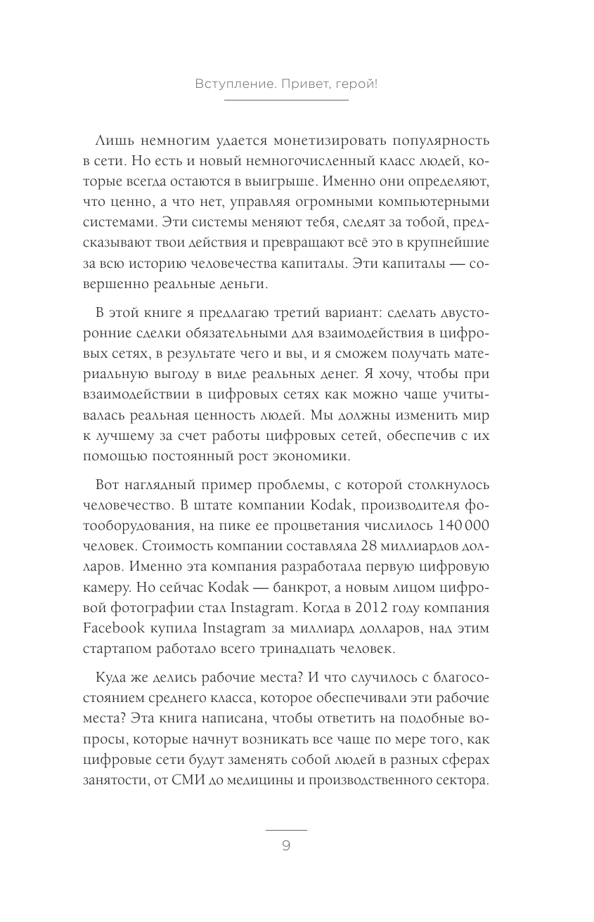Джарон Ланье относит себя к диджерати, технологическому авангарду Кремниевой долины. Его прогнозы и видение будущего шокирует, вселяют надежду, пугают, и чаще всего сбываются. "Кому принадлежит будущее?" - книга, задающая важные вопросы о будущем человечества и устройстве нового общества. Как изменила эпоха интернета социум? И как она продолжает его менять? Какой будет новая экономическая система и социальное устройство? И что все это значит для нас, простых людей? И конечно, кому же принадлежит будущее?