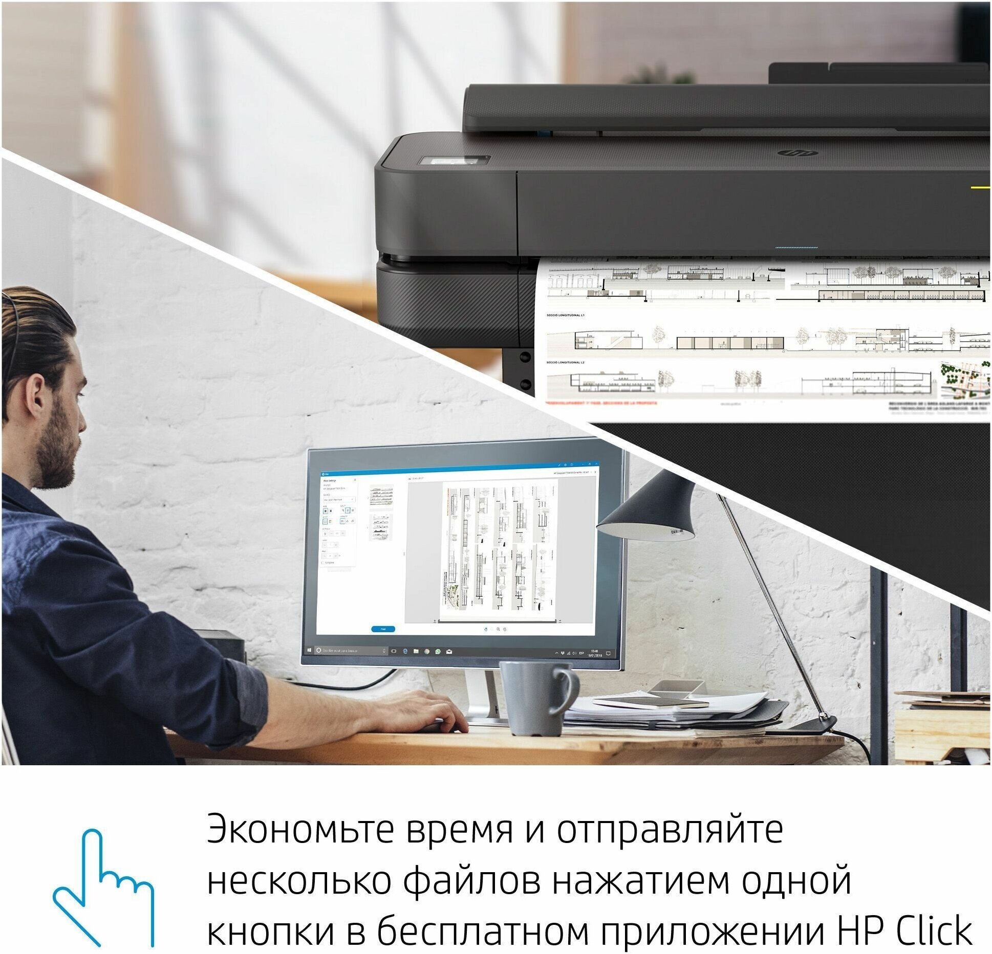 Самый компактный в мире широкоформатный принтер со встроенной подставкой, идеально подходящий для вашего офиса, бюджета и стиля работы. С легкостью печатайте проекты на бумаге различных форматов. Чертеж формата A1 всего за 30 секунд. Память 1 Гбайт.