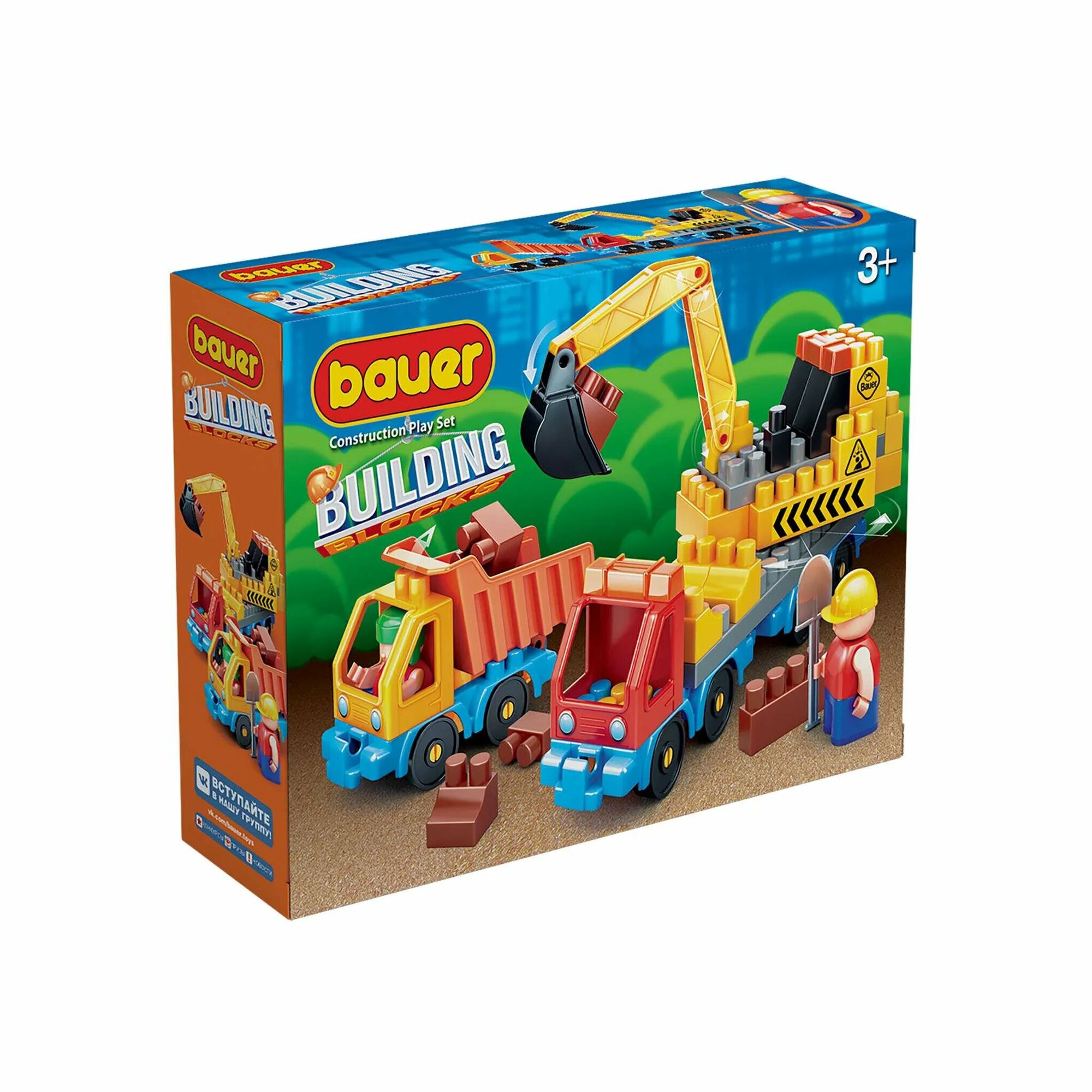 Конструктор Bauer Стройка (69 элементов) поможет маленькому строителю воплотить в жизнь любую свою фантазию. Особенности: Собирая из кубиков свои будущие конструкторские шедевры и строительную технику, ребенок развивает логическое мышление и моторные навыки. С наборами Стройка так просто создать самую настоящую строительную площадку у себя дома! В комплекте: кубики различных размеров и конфигураций фигурки человечков кабины колеса базы и детали кузова для сборки машин и строительной техники крюки ковши инструменты для человечков наклейки элементы декора (заборы, дорожные знаки) зубчатые колеса подвижные элементы.