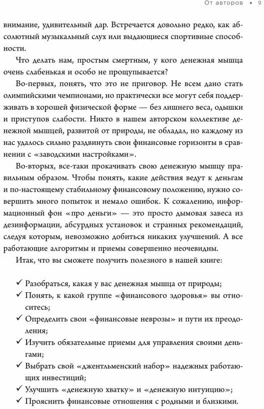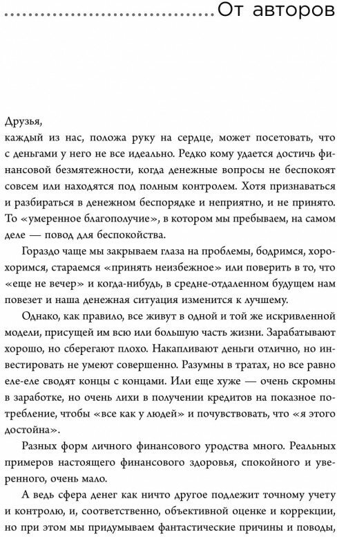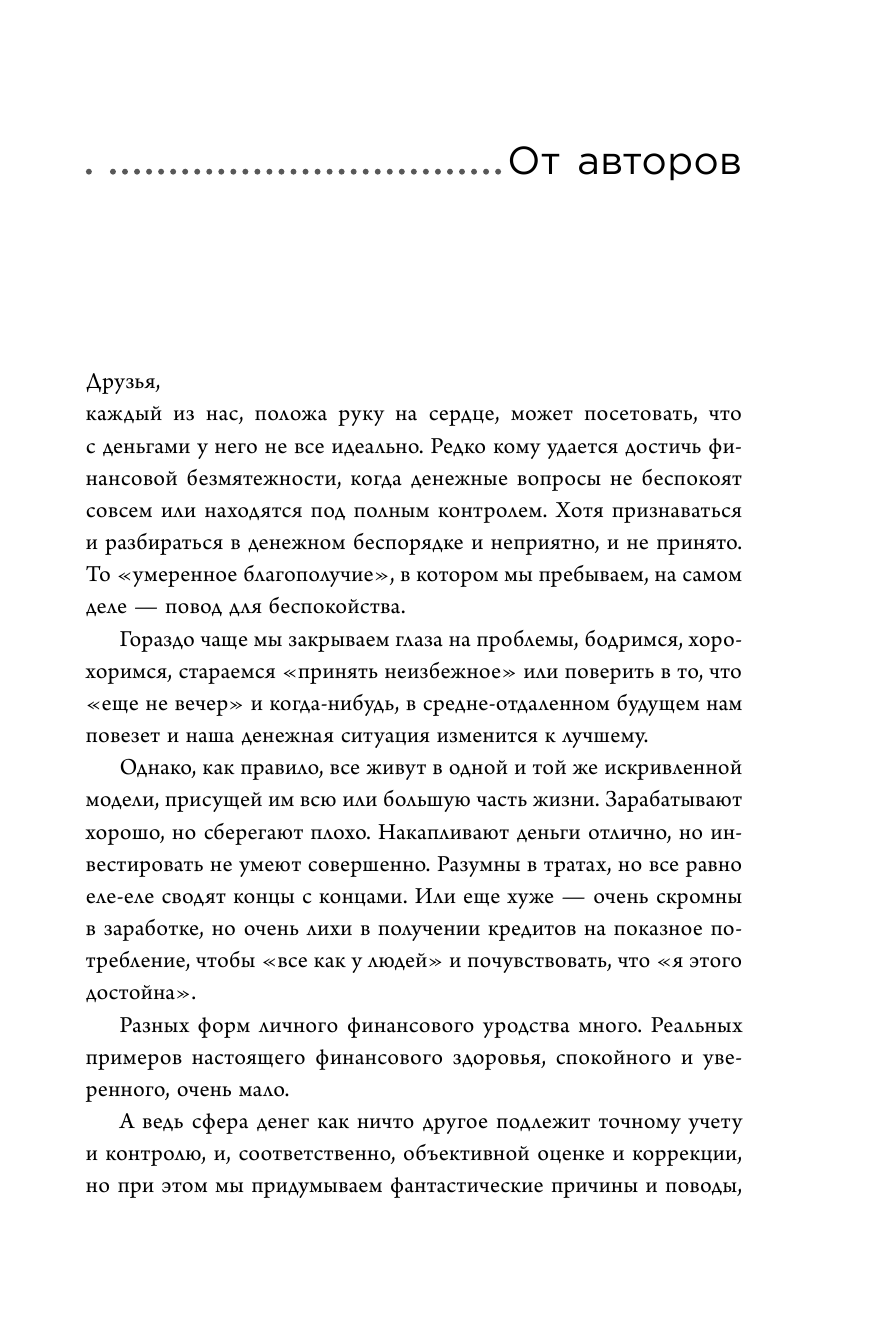 Главное достоинство книги - она предлагает максимально реалистичные финансовые решения, работающие "здесь и сейчас", в наших экономических условиях. Вы сможете определить и улучшить свою группу финансового здоровья, выстроить реальную финзащиту себя и своей семьи, избежать денежных потерь в инвестициях.