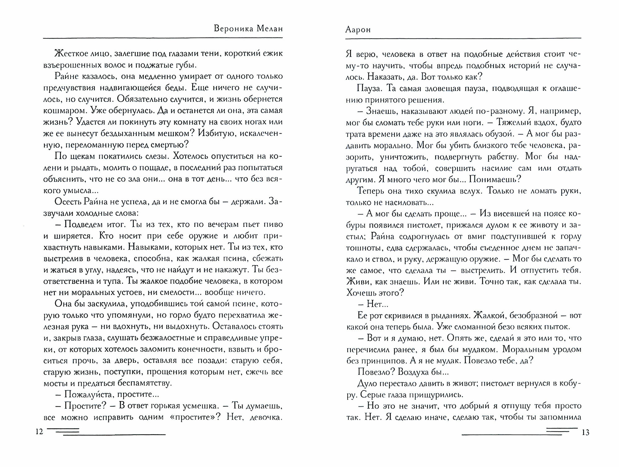 Одна из самых любимых книг автора, над которой я рыдала 80% текста. Красивая история любви, зародившаяся в пошарпанном доме. Сильные характеры, красивый язык, от которого оторваться невозможно, и нестандартный сюжет. Книги Вероники бесподобны и не банальны. В ранимой Райне я многое нашла о себе. Про мужчин, о которых пишет Мелан, я вообще молчу! Чистый сок, мечта!