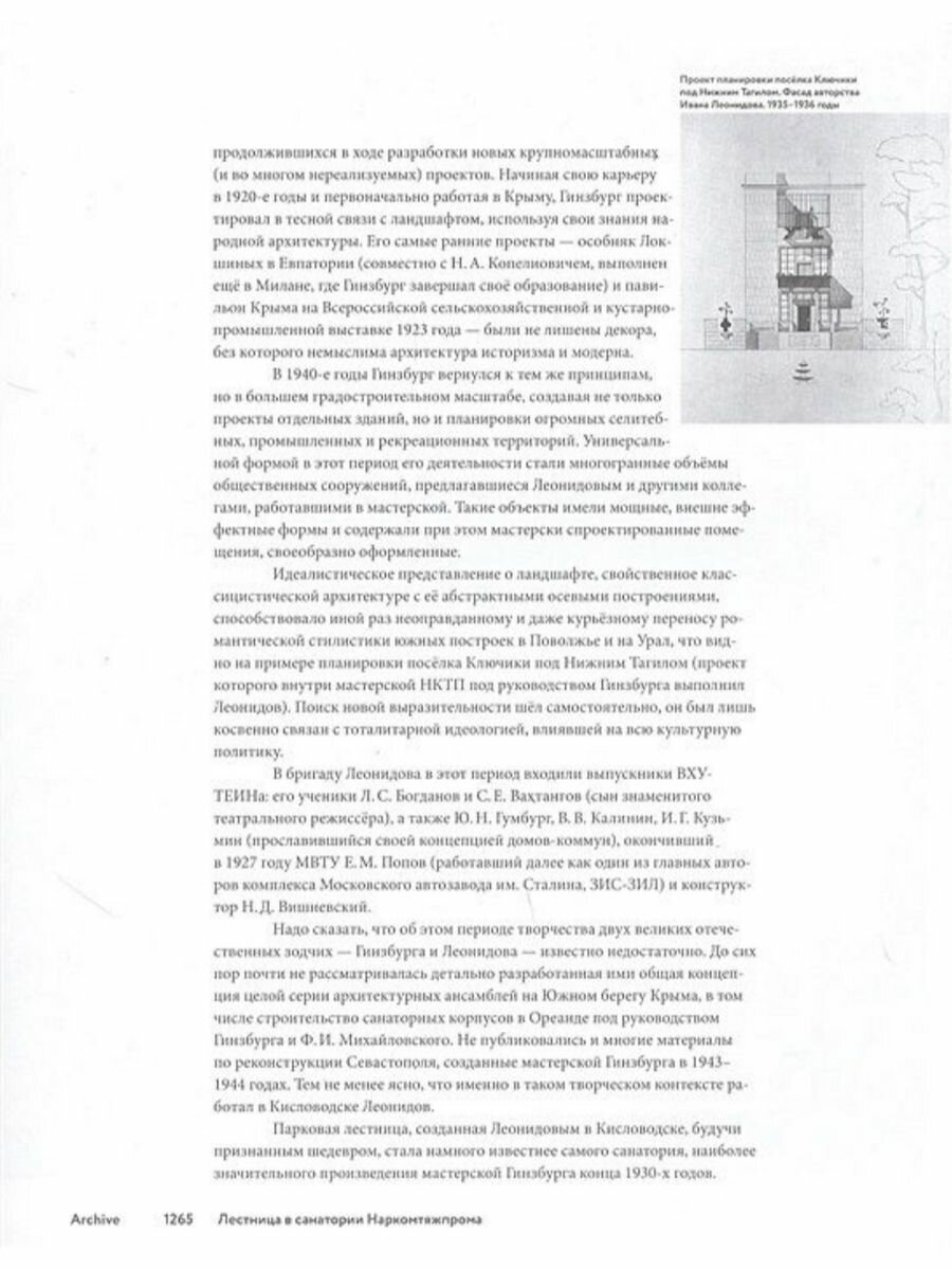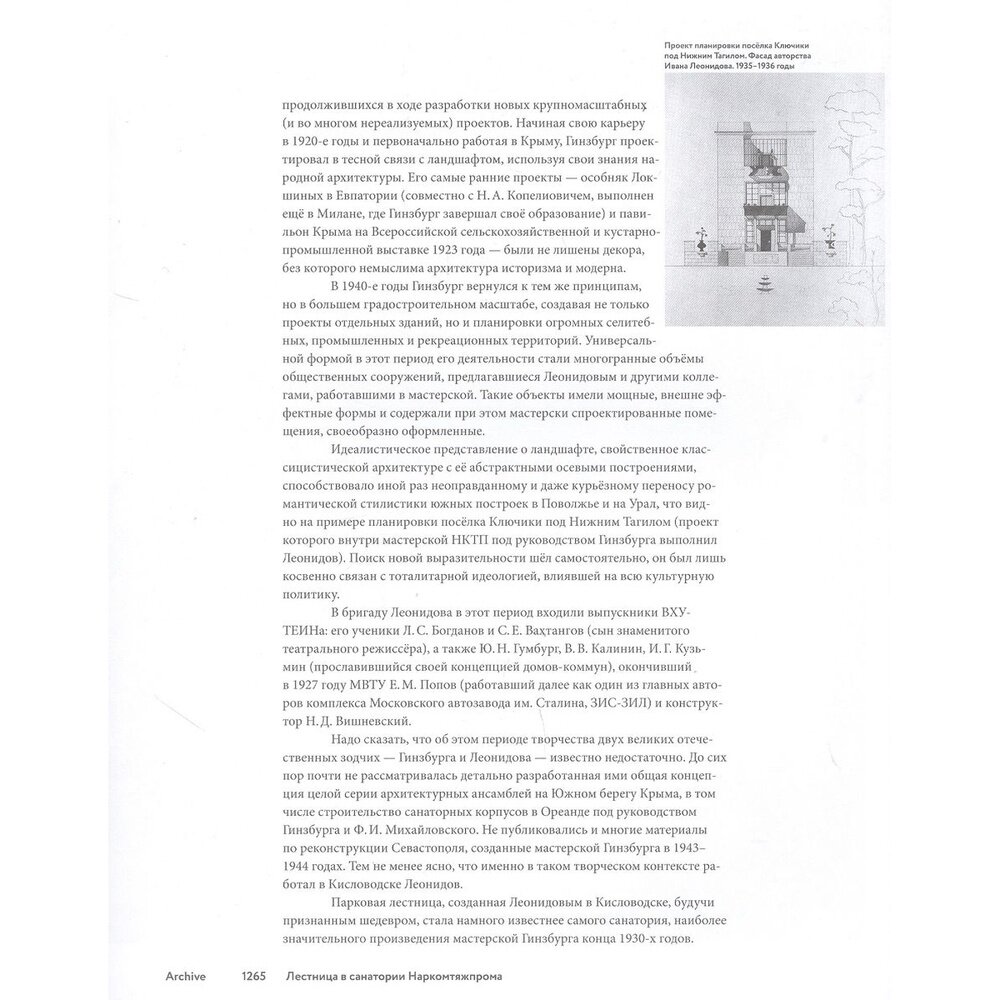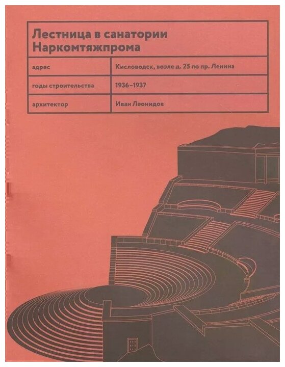 Книга посвящена парковой лестнице, выстроенной по проекту знаменитого мастера авангарда Ивана Леонидова. Это уникальное творение стало частью ландшафтной архитектуры санатория в Кисловодске. Свой проект Леонидов выполнил как коллега Моисея Гинзбурга в его мастерской при Наркомате тяжёлой промышленности. Уникальность этой лестницы 1930-х годов — в сходстве с античными прототипами, которые Леонидов не имел возможности увидеть в натуре, в тончайшей проработке её весьма сложной композиции, артистически выполненной из естественного камня. Бессистемное строительство, развернувшееся вблизи этой заброшенной сегодня постройки, ставит под сомнение её сохранность вместе с заповедным природным окружением.