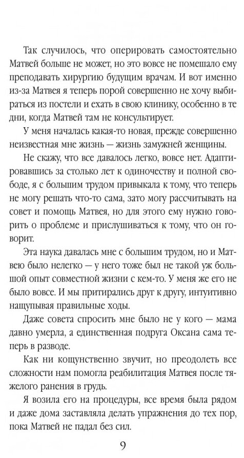 В новом романе продолжается личная история владелицы клиники Ангелины, ее отношения с коллегой Матвеем Мажаровым - теперь уже бывшим, и с подругой Оксаной.
