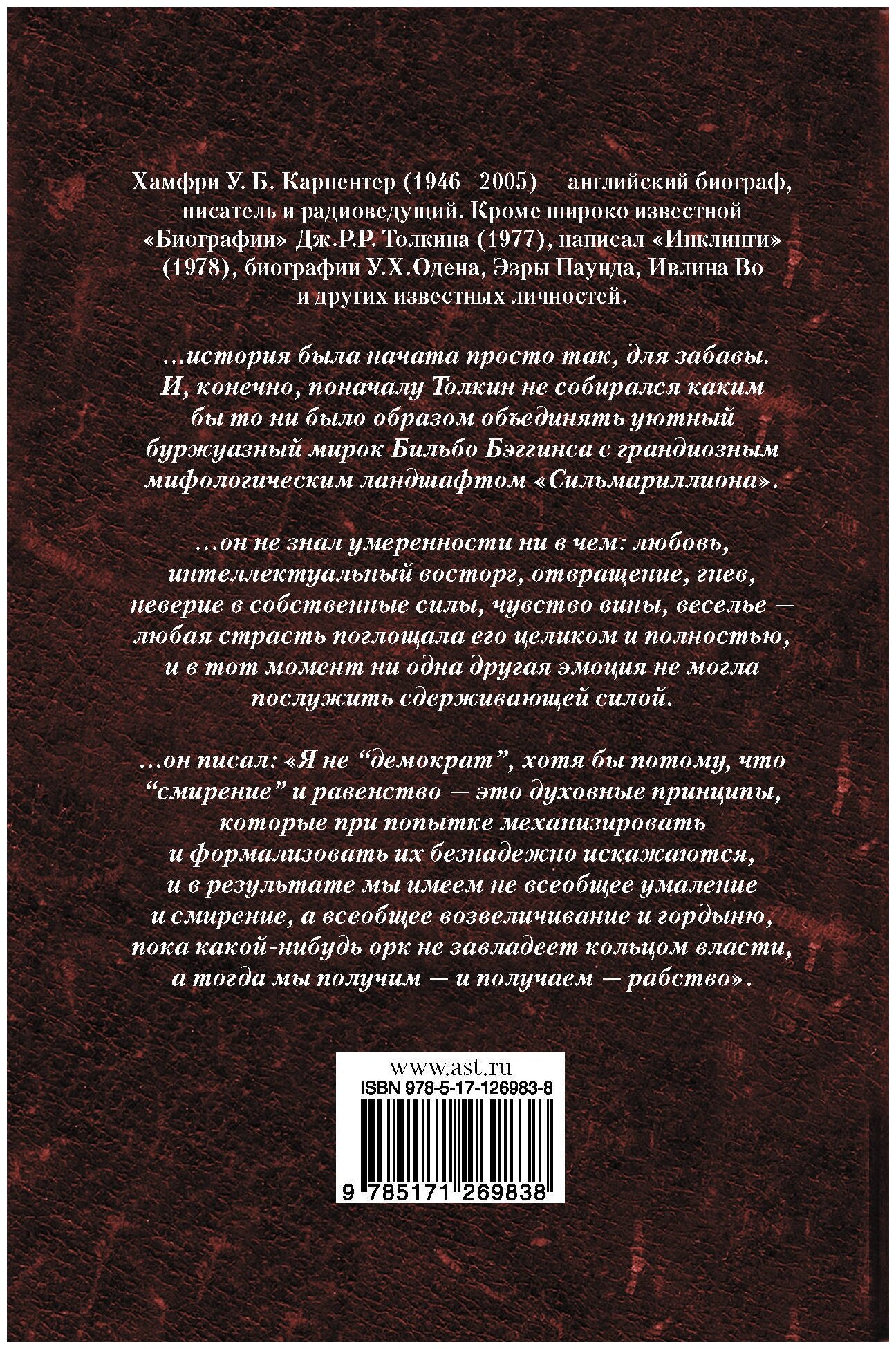 Хамфри У. Б. Карпентер (1946-2005) - английский биограф, писатель и радиоведущий. Кроме широко известной "Биографии" Дж.Р.Р.Толкина (1977), написал "Инклинги" (1978), биографии У.Х.Одена, Эзры Паунда, Ивлина Во и других известных личностей.