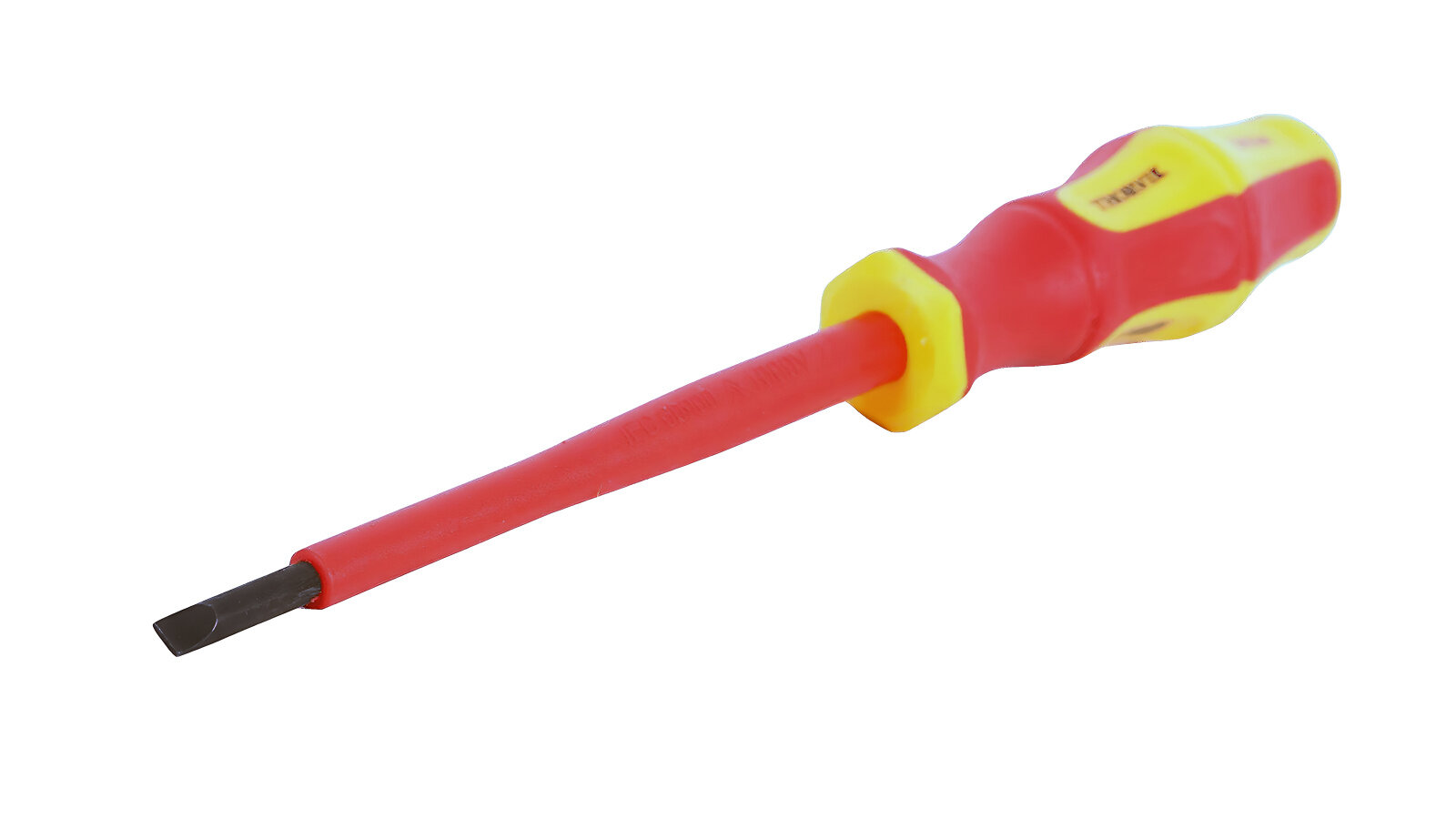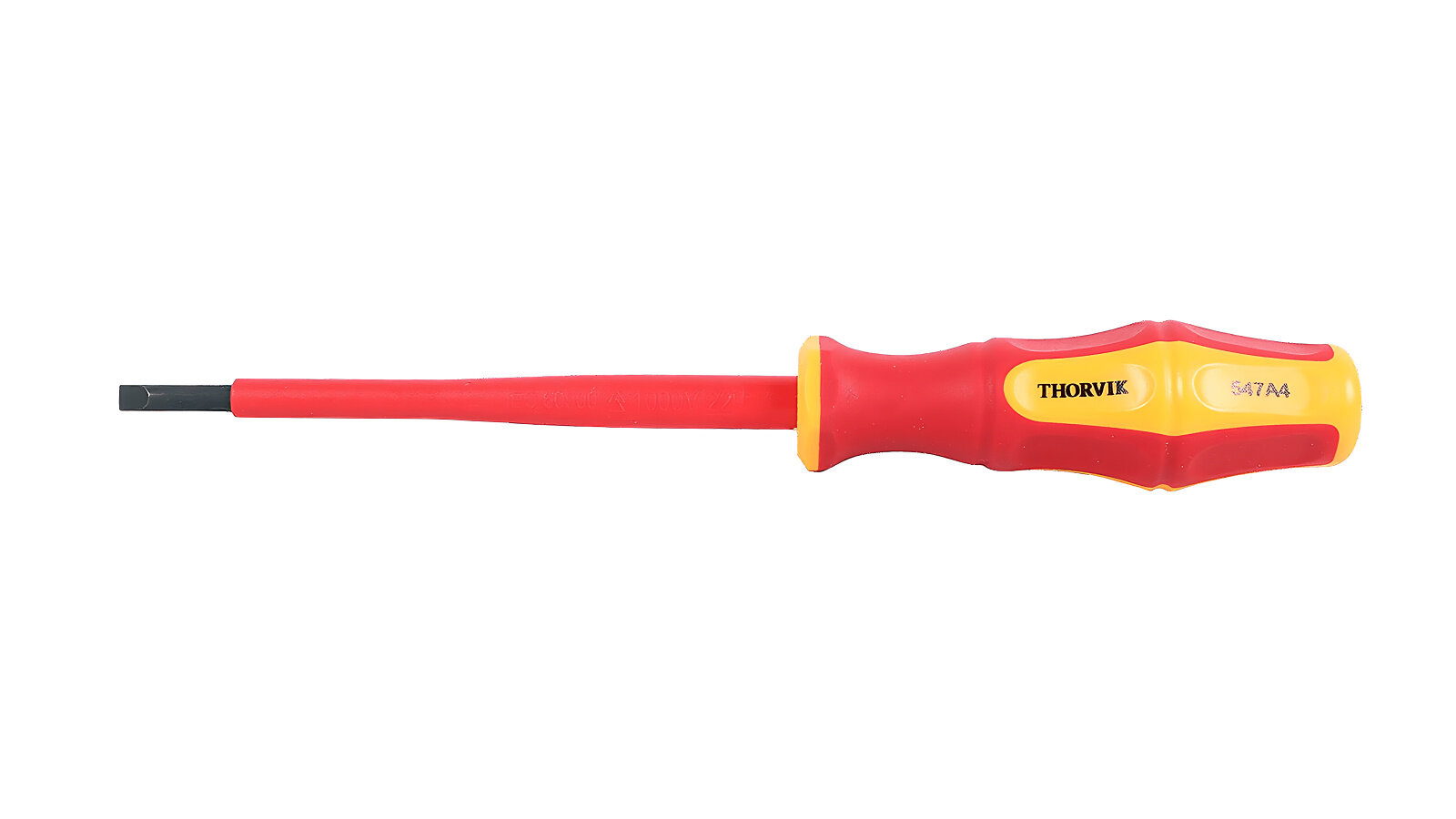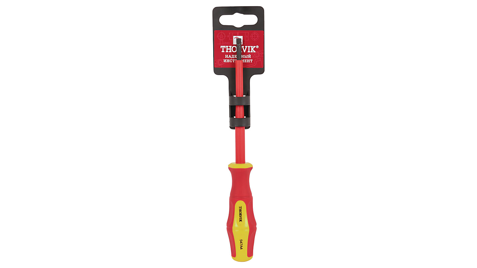 Шлицевая диэлектрическая отвертка THORVIK VDE 1000 v SL4x100 мм 52173 - это ручной инструмент, который позволяет безопасно работать с крепежом под напряжением до 1000 В. Отвертка имеет диэлектрическое покрытие. Стержень изготовлен из хромованадиевой стали и оснащен намагниченным наконечником. Рукоятка состоит из двухкомпонентного материала. Длина стержня - 100 мм Тип наконечника - Slotted (SL) Общая длина - 188 мм Материал рукояти - 2-х компонентный Диэлектрическое покрытие - есть Намагниченный наконечник - да Форма ручки - Прямая Размер шлица - 4 Вес нетто - 0.06 кг Материал стержня - CrV