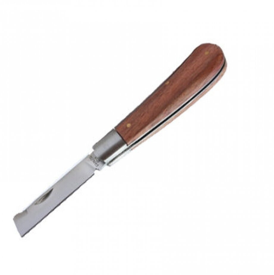 На конце лезвия имеется зубец, которым удобно раздвигать кору в месте прививки.