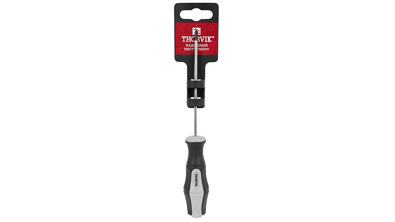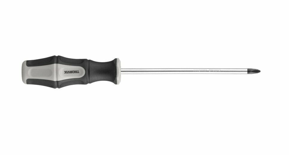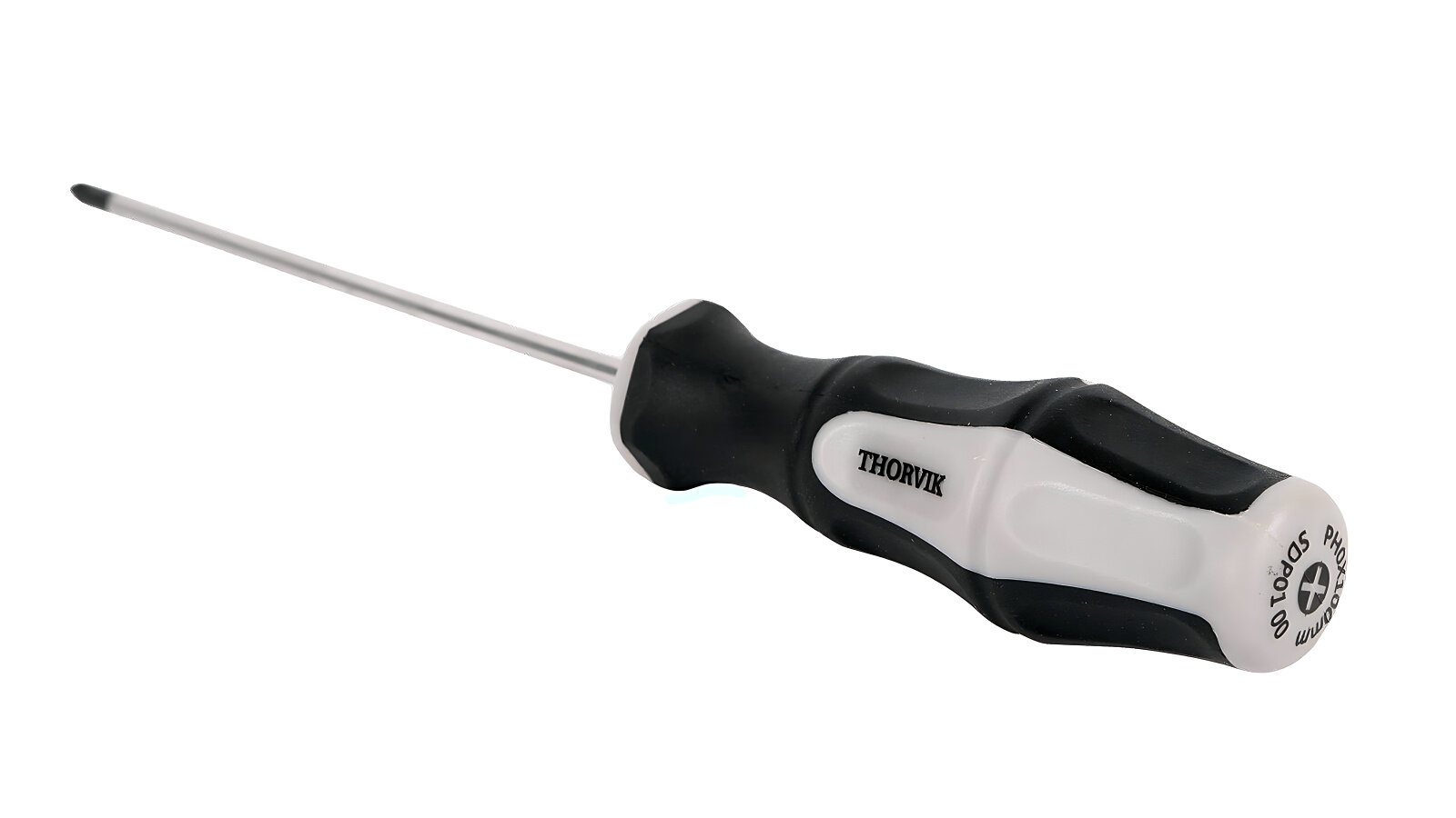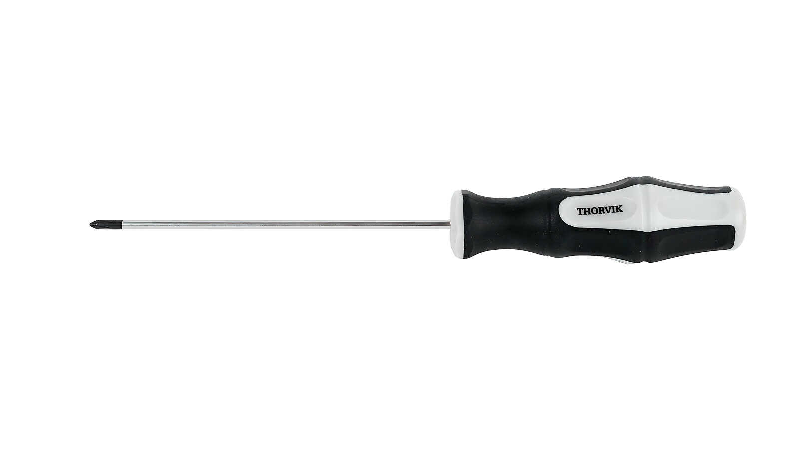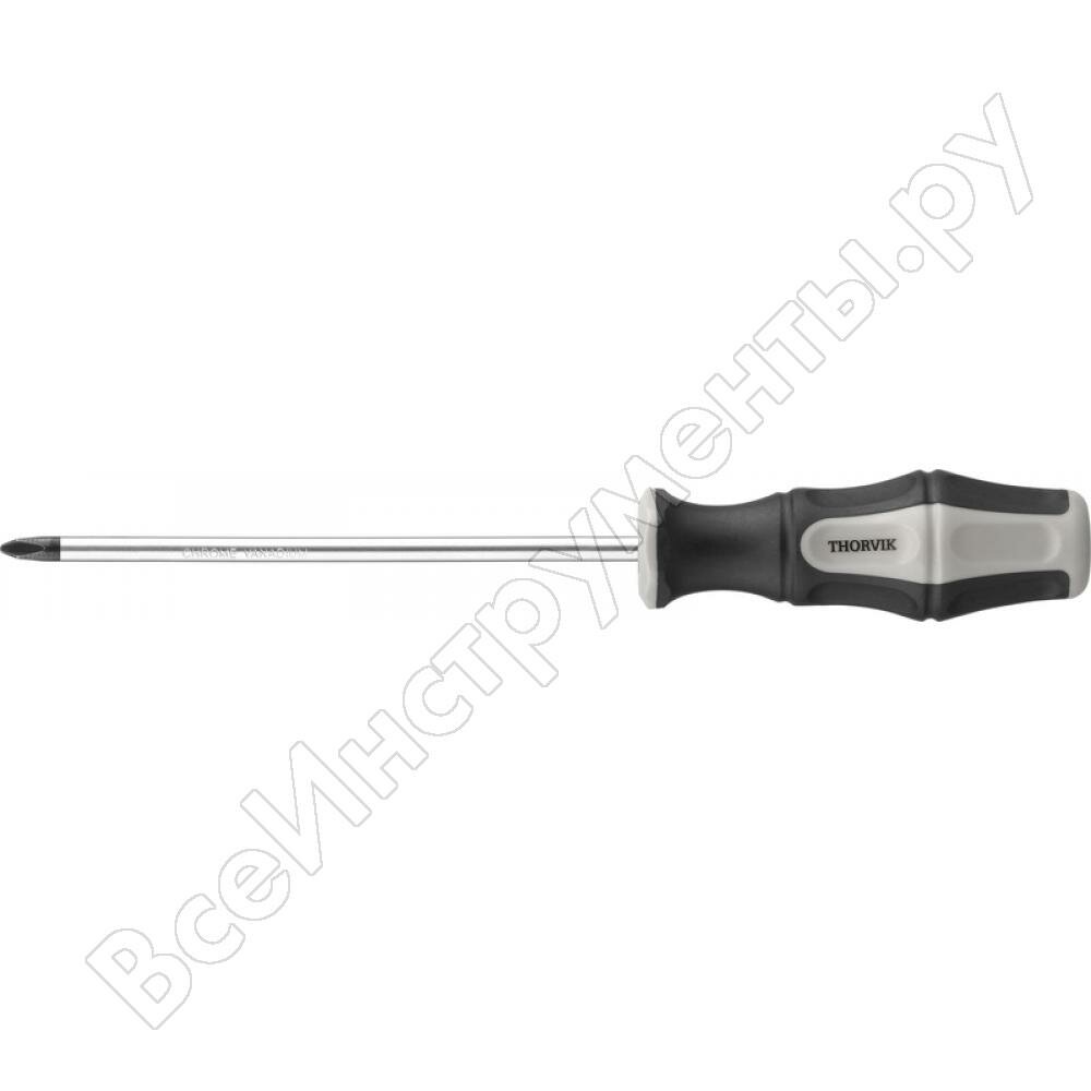Описание Отвертка стержневая крестовая, PH0x100 мм. Отвертки Thorvik изготовлены в соответсвии с требованиями стандарта DIN 5262, отвечают техническим условиям ГОСТ 17199-88. Изделия комплектуются высококачественными стержнями из хромованадиевой стали. Намагниченные рабочие части отверток в состоянии удерживать крепеж, что очень часто помогает при работе в труднодоступных местах. Эргономичные двухкомпонентные рукоятки удобно лежат в руке. Мы предлагаем несколько типов отверток Thorvik, которые применяются для работы с резьбовыми крепежными деталями с внутренними рабочими профилями: шлиц прямой, Phillips (крест), Pozidriv.По конструкции отвертки можно разделить на инструменты со скрытой установкой стержня в рукоятке, отвертки со сквозной установкой стержня, имеющие стальной затыльник и шестигранный усилитель момента, и диэлектрические отвертки. Размеры