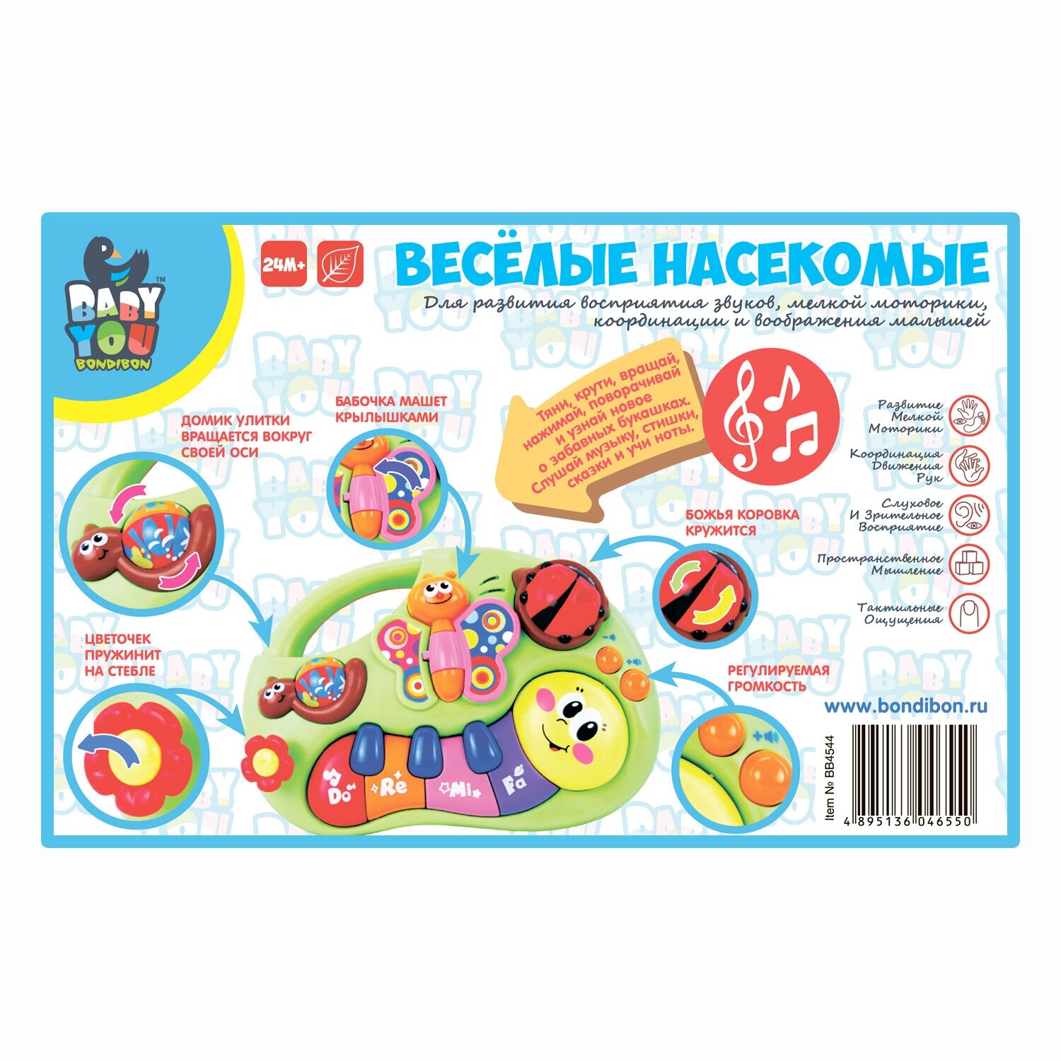 Развивающая игрушка Bondibon пианино Веселые насекомые
