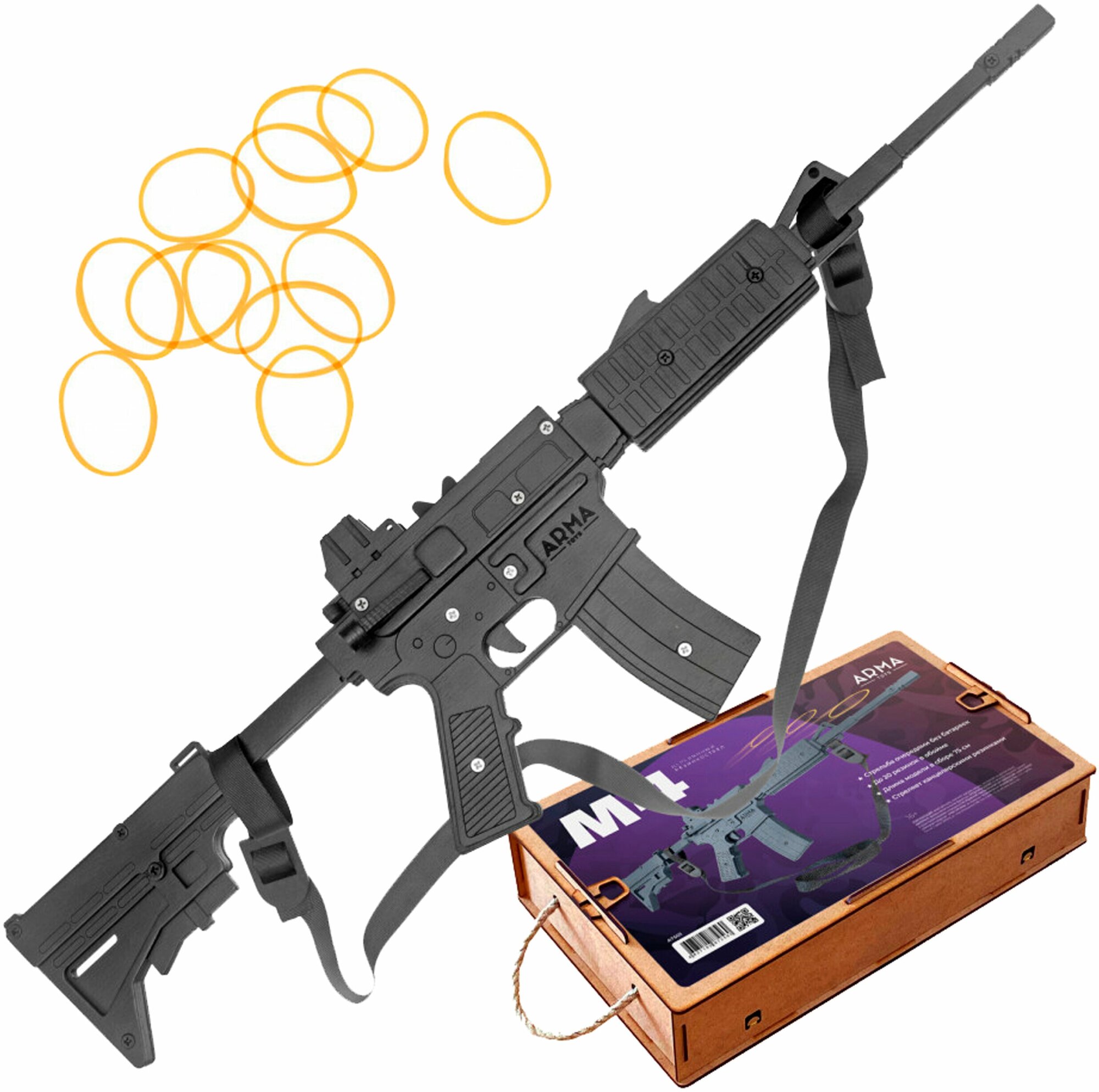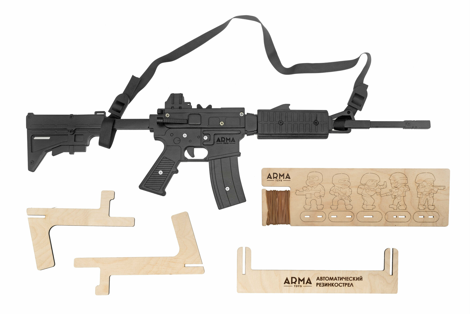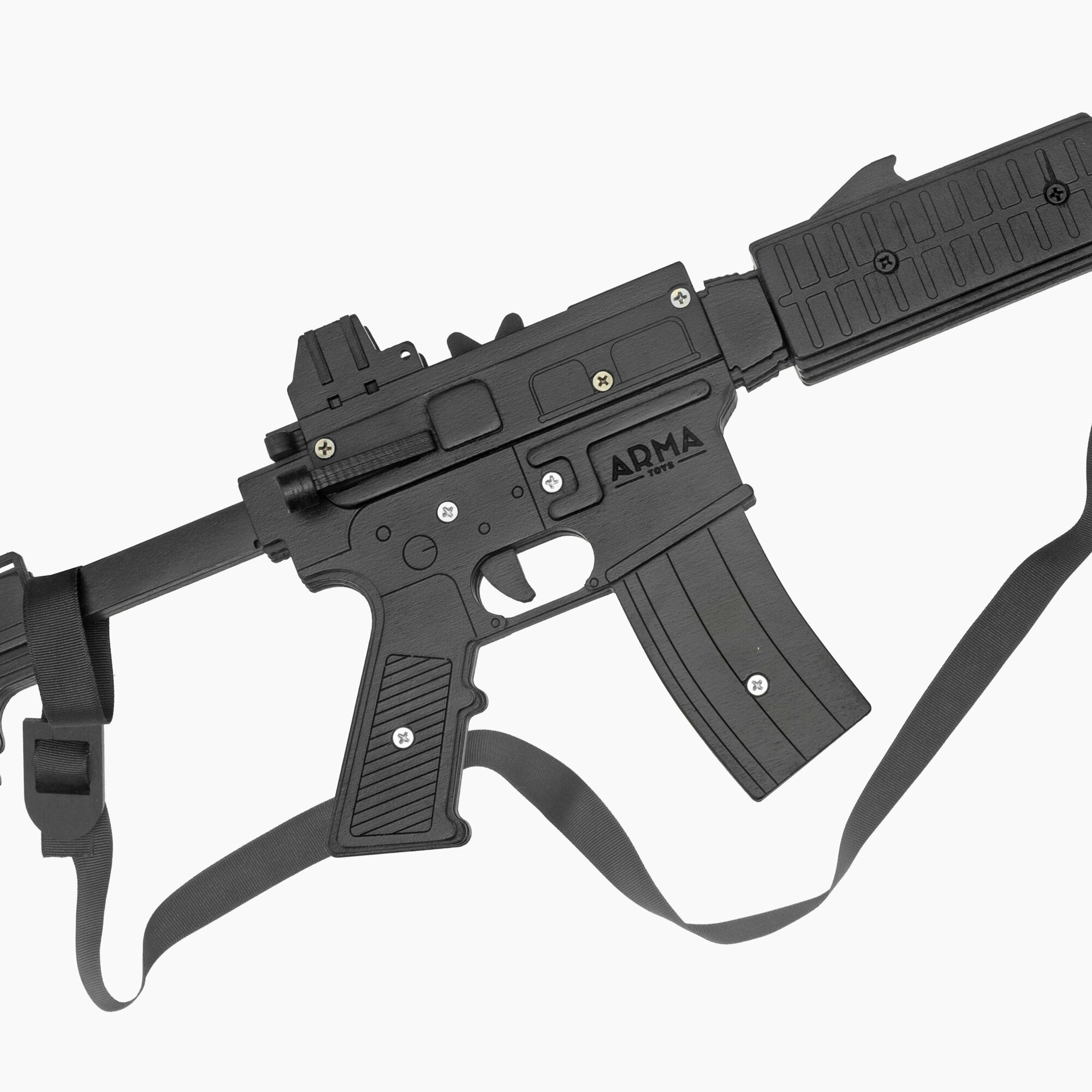 Сервис сравнения цен СкидкаГИД предлагает сравнить цены на товар «Винтовка М4 из дерева с макетом коллиматорного прицела и стрельбой очередями(игрушка) Arma.toys Резинкострел в сборе Винтовка М-4 с телескопическим прикладом»