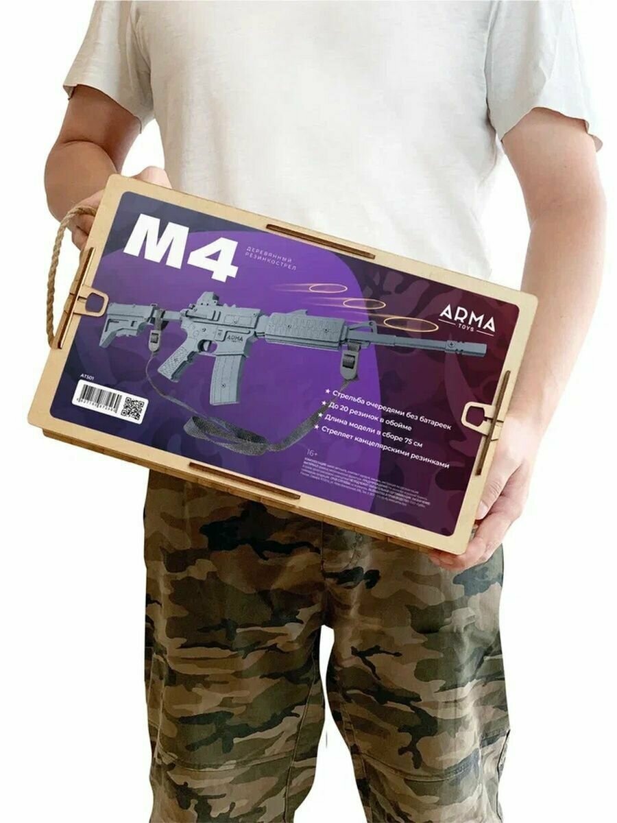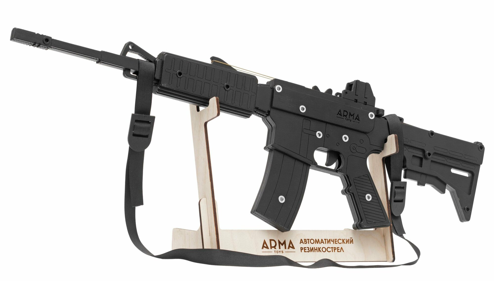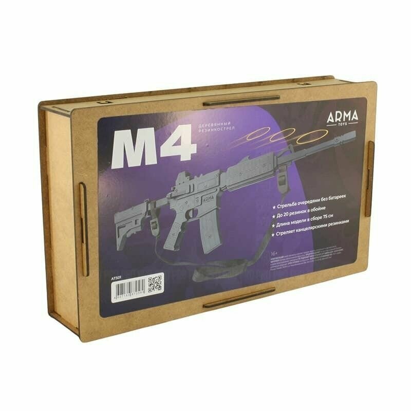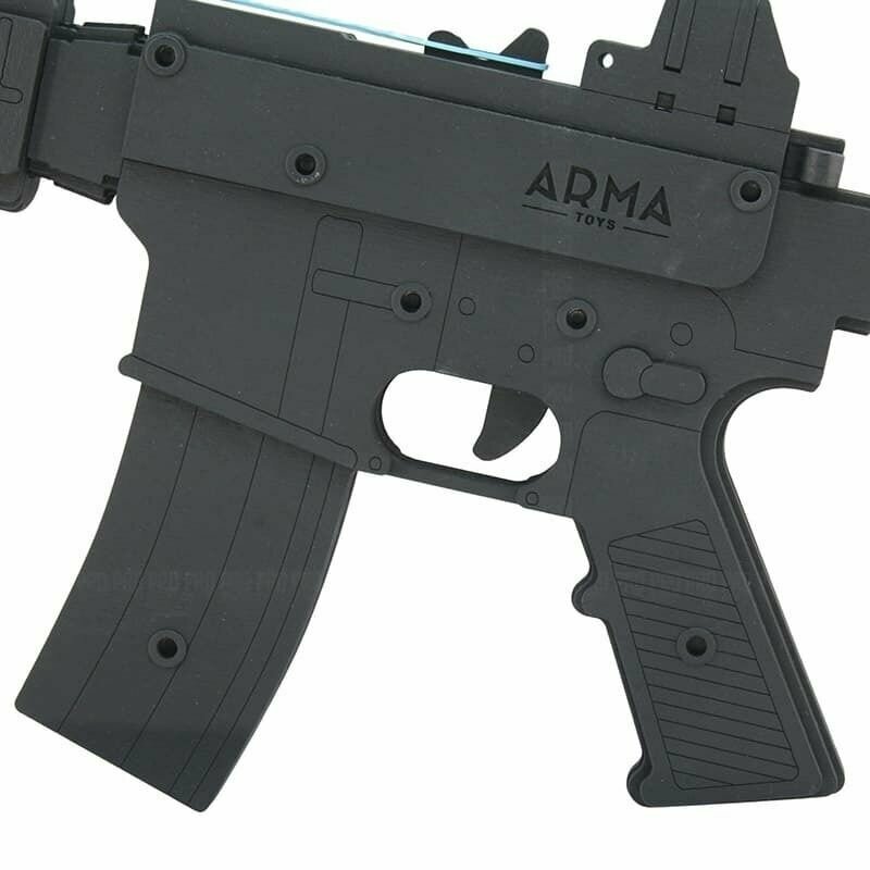 Сервис сравнения цен СкидкаГИД предлагает сравнить цены на товар «Винтовка М4 из дерева с макетом коллиматорного прицела и стрельбой очередями(игрушка) Arma.toys Резинкострел в сборе Винтовка М-4 с телескопическим прикладом»