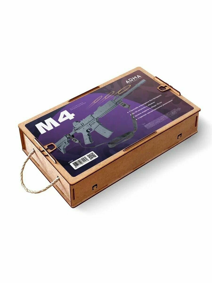 Винтовка М4 из дерева с макетом коллиматорного прицела и стрельбой очередями(игрушка) Arma.toys Резинкострел в сборе Винтовка М-4 с телескопическим прикладом