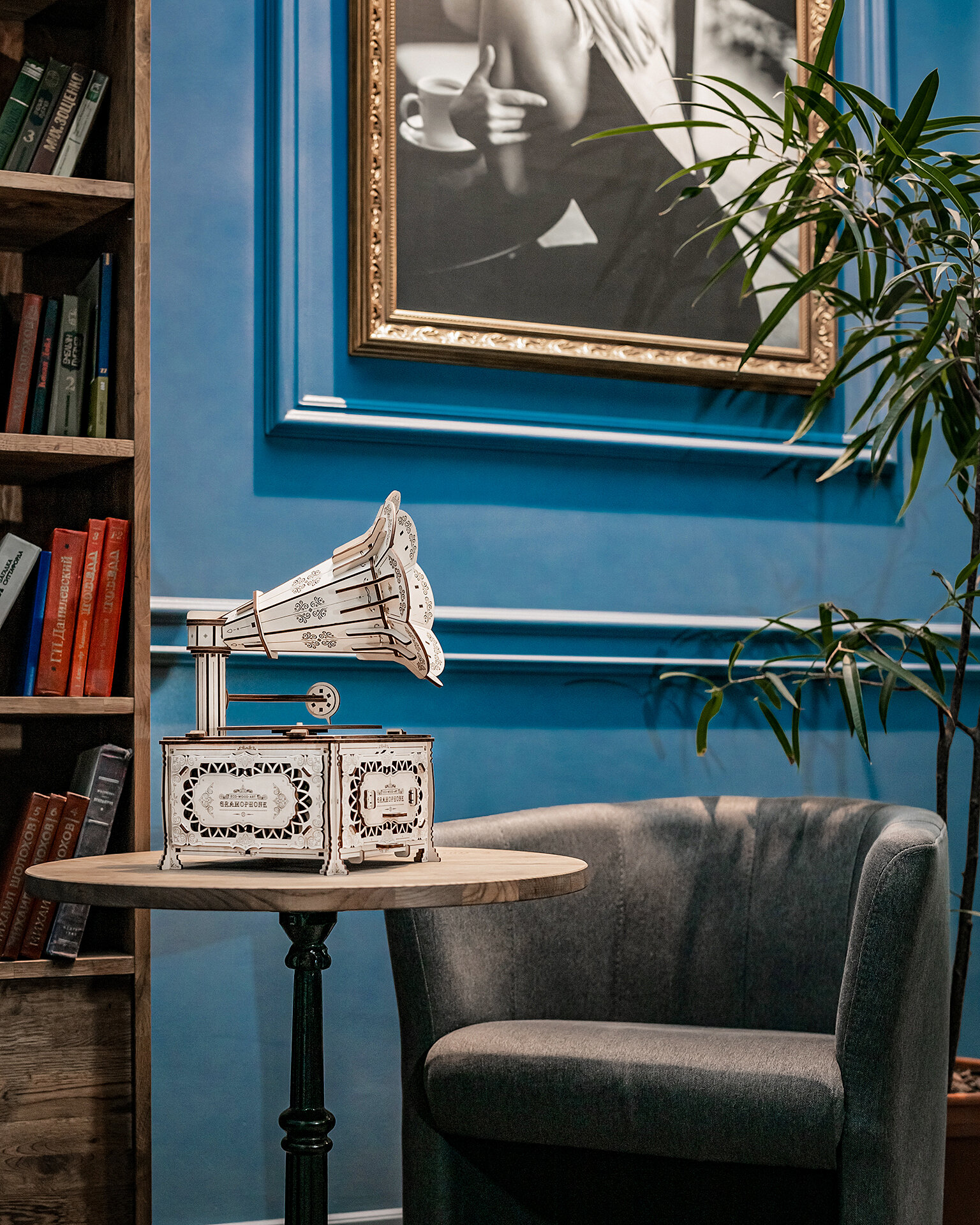 В конструкторе также есть шкатулка для мелочей и специальная полочка для смартфона, на котором вы можете включить любимую мелодию и начать романтично крутить ручку граммофона.