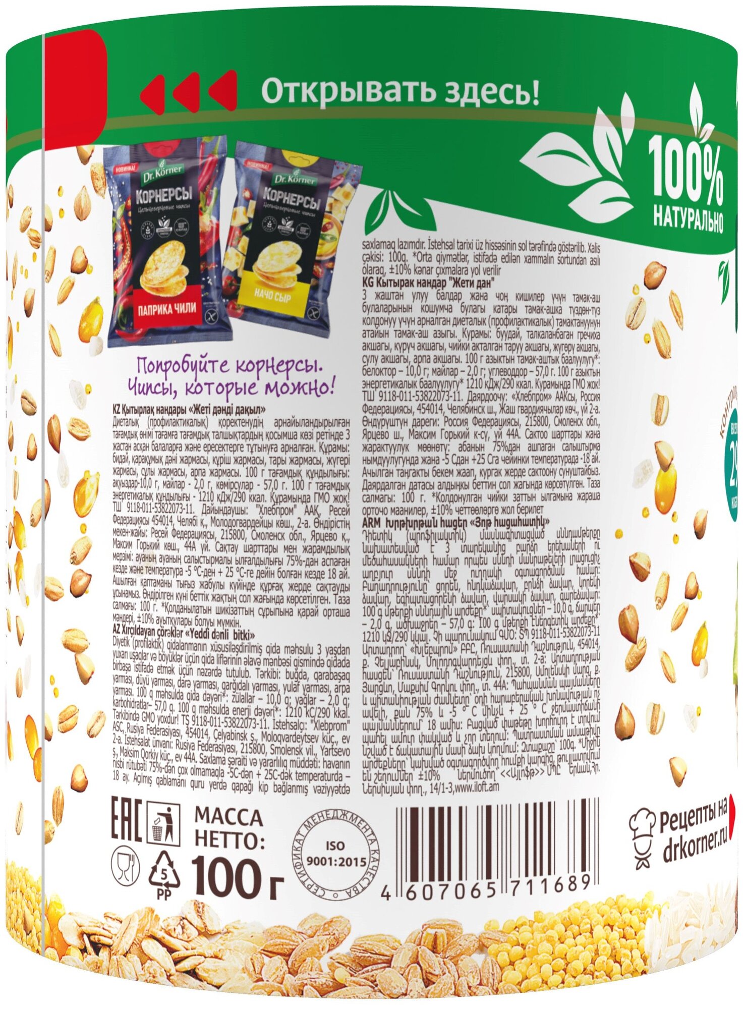 Сервис сравнения цен СкидкаГИД предлагает сравнить цены на товар «Хлебцы Dr. Korner "Семь злаков" хрустящие 100гр (158016)»