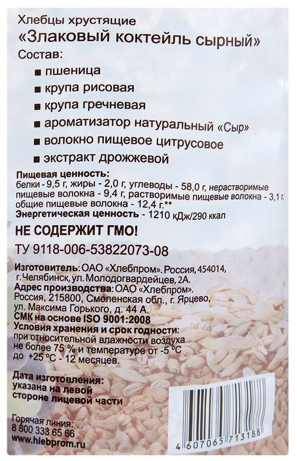 | Состав товара | Пшеница, крупа рисовая, крупа гречневая, ароматизатор натуральный "Сыр", волокно пищевое цитрусовое, эктсракт дрожжей. ТУ 9118-006-53822073-08 |
