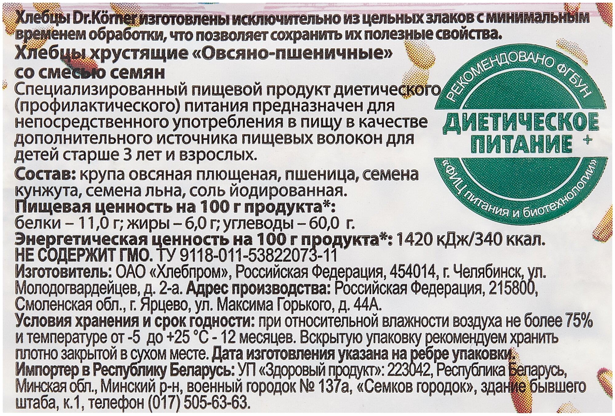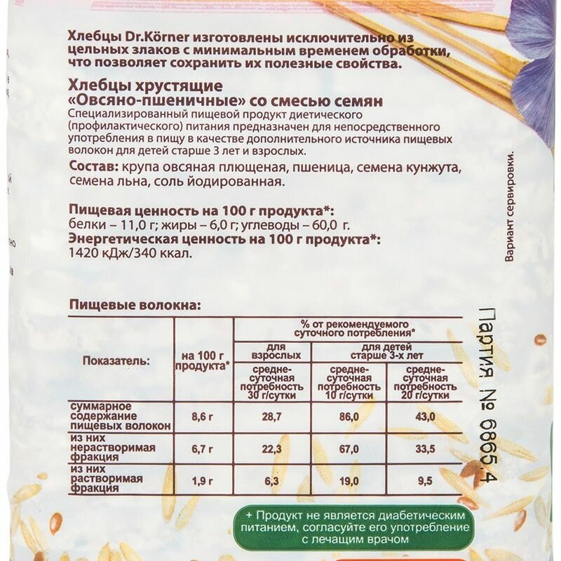 | Состав | пшеница, крупа овсяная, семена кунжута, семена льна, семена подсолнечника, соль йодированная. не содержит гмо. |