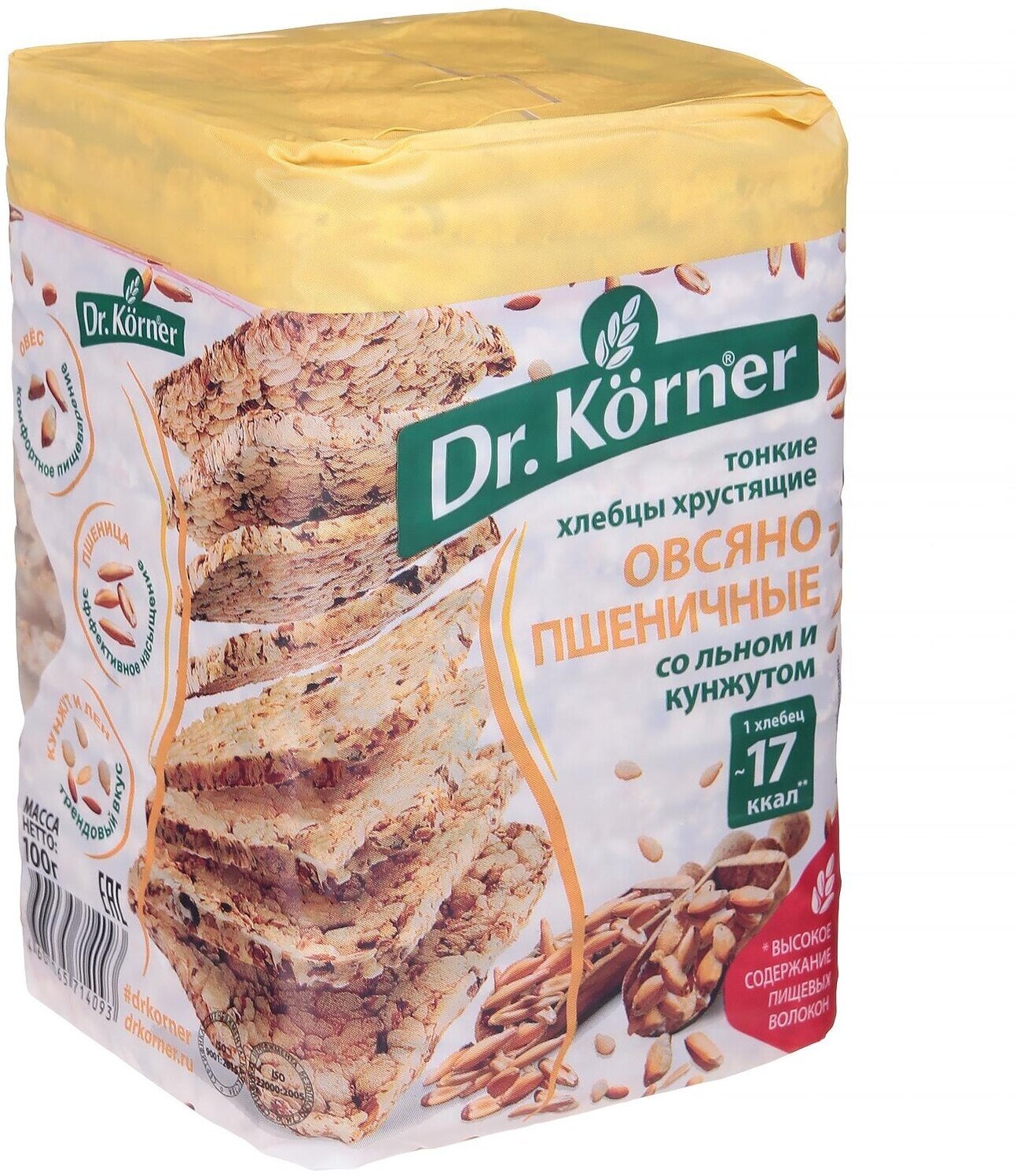 Хлебцы Dr. Korner "Овсяно-пшеничные" со льном и кунжутом тонкие хрустящие 100гр (158123)