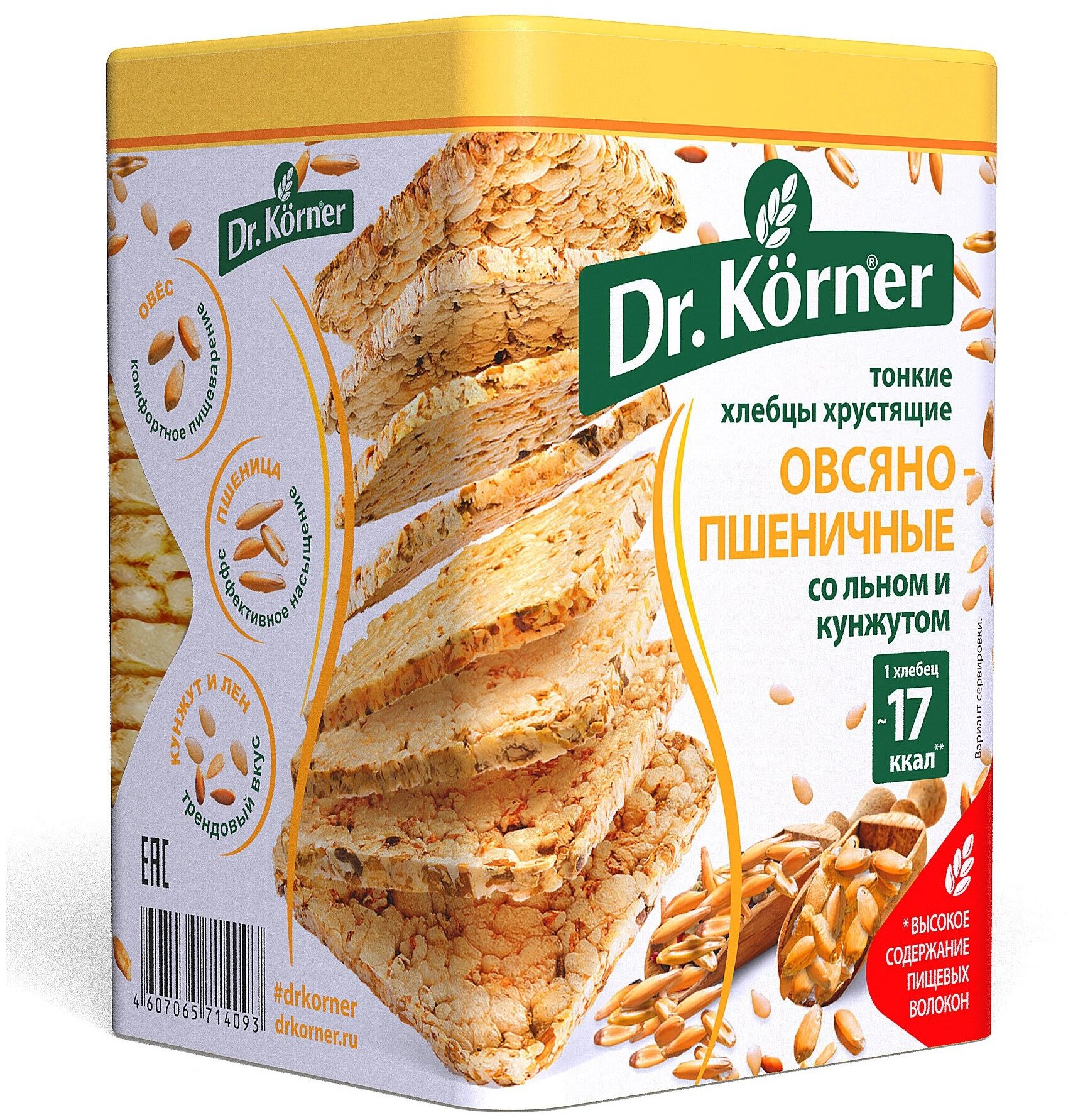 Тонкие квадратные цельнозерновые хлебцы. Новые изысканные вкусы для настоящих гурманов! Еще больше пользы, больше вкуса! Цельнозерновые хлебцы Dr.Korner благодаря своему составу и способу приготовления сохраняют все полезные вещества зёрен и круп в максимальном количестве. Хлебцы легко усваиваются и дарят чувство насыщения.