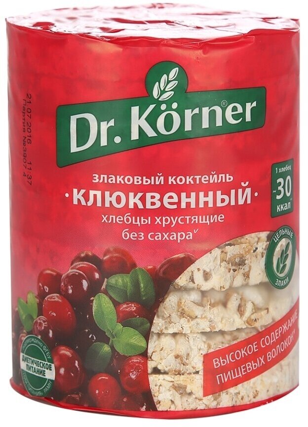 Сладкие хлебцы Dr.Korner являются прекрасной альтернативой для любителей сладких лакомств, стремящихся к поддержанию хорошей физической формы. Хлебцы содержат клетчатку, способствующую сжиганию калорий, и натуральные добавки (мёд, экстракты ягод и фруктов).