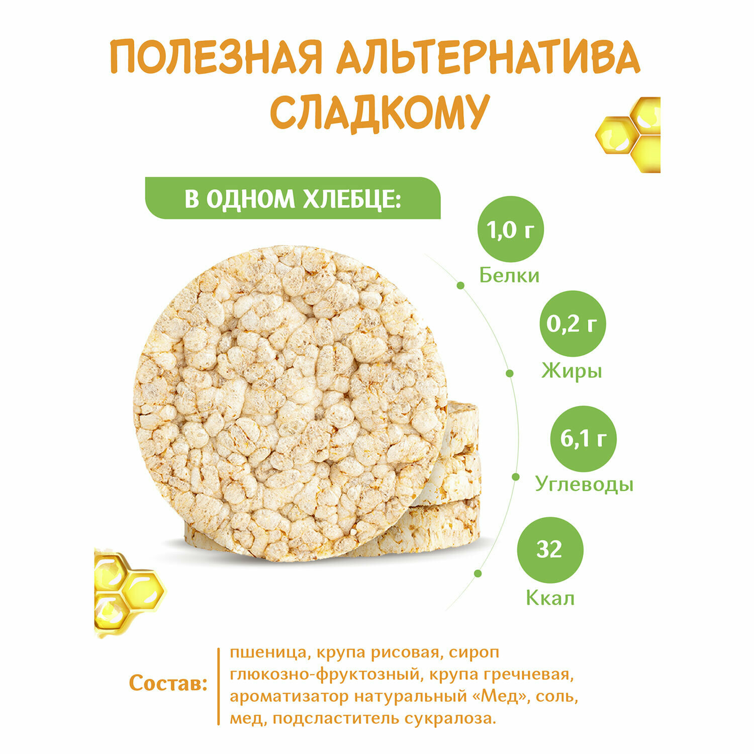| Состав | Пшеница, крупа рисовая, фруктоза, крупа гречневая, ароматизатор натуральный медовый, соль йодированная, подсластитель сукралоза, мед. |