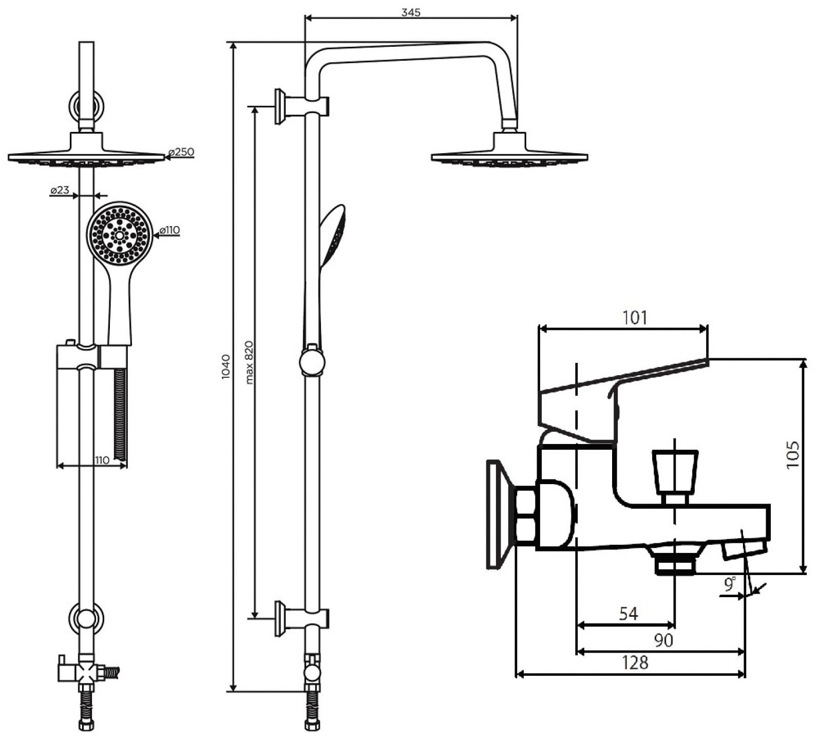 | Состав комплекта | смеситель, верхний душ, душевая стойка |