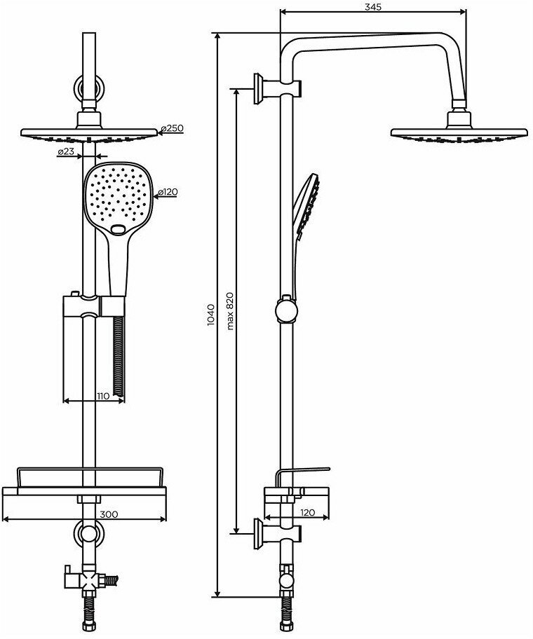 | Комплектация | Смеситель, эксентрики, настенный держатель, , верхний душ с кронштейном, крепления, душевой шланг, душевая лейка, держатель для душа, инструкция |