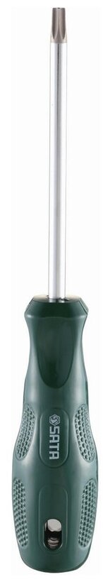 Отвертка SATA Отвёртка 'серия A' это: Точно изготовленный наконечник; Намагниченный наконечник для упрощения работы с крепёжными элементами и повышает комфорт при работе с данным инструментом; Лезвие изготовлено из хромованадиевой легированной стали, оптимально упрочнённой и закалённой для обеспечения максимальной прочности и долговечности; Ацетатная рукоятка позволяет обеспечивать максимальную прочность, долговечность и ударопрочность; Уникальная текстура рукоятки обеспечивает захват без проскальзования; Геометрия рукоятки спроектирована таким образом, что широкий круглый «затылок» рукоятки позволяет максимально передавать крутящий момент, а узкая «талия» в районе стержня позволяет быстро вращать инструмент пальцами. Технические характеристики:- Максимальный момент затяжки 22.5 Н·м;- Размер: Наконечник (шлиц) T -27; - Лезвие (стержень, жало) 100 мм; - Длина (общая) 203 мм; - Диаметр рукоятки 34.0 мм.