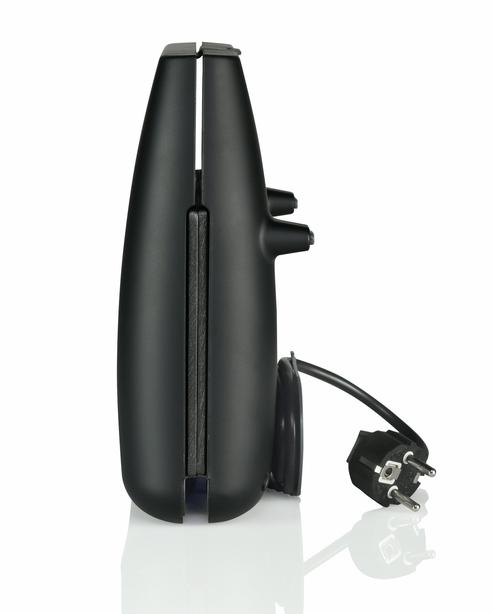 Электрогриль Gorenje с антипригарным покрытием пластин, которое не дает пище пригорать к поверхности. Приспособление для смотки шнура встроено в основание прибора и позволяет очень легко укладывать шнур внутрь.